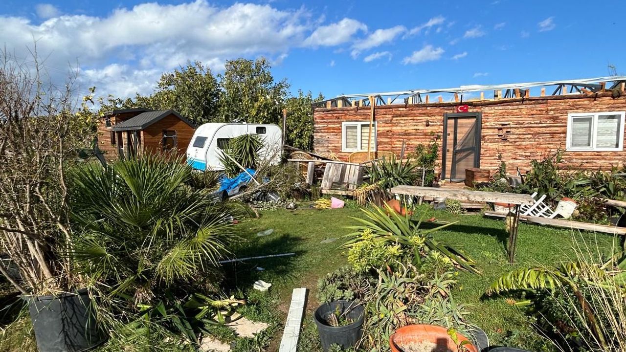 Gece çıkan hortum nedeniyle konteynırda kalan bir kişi yaralanırken, Erdoğan ailesinin evinin çatısı uçtu ve aracı zarar gördü.