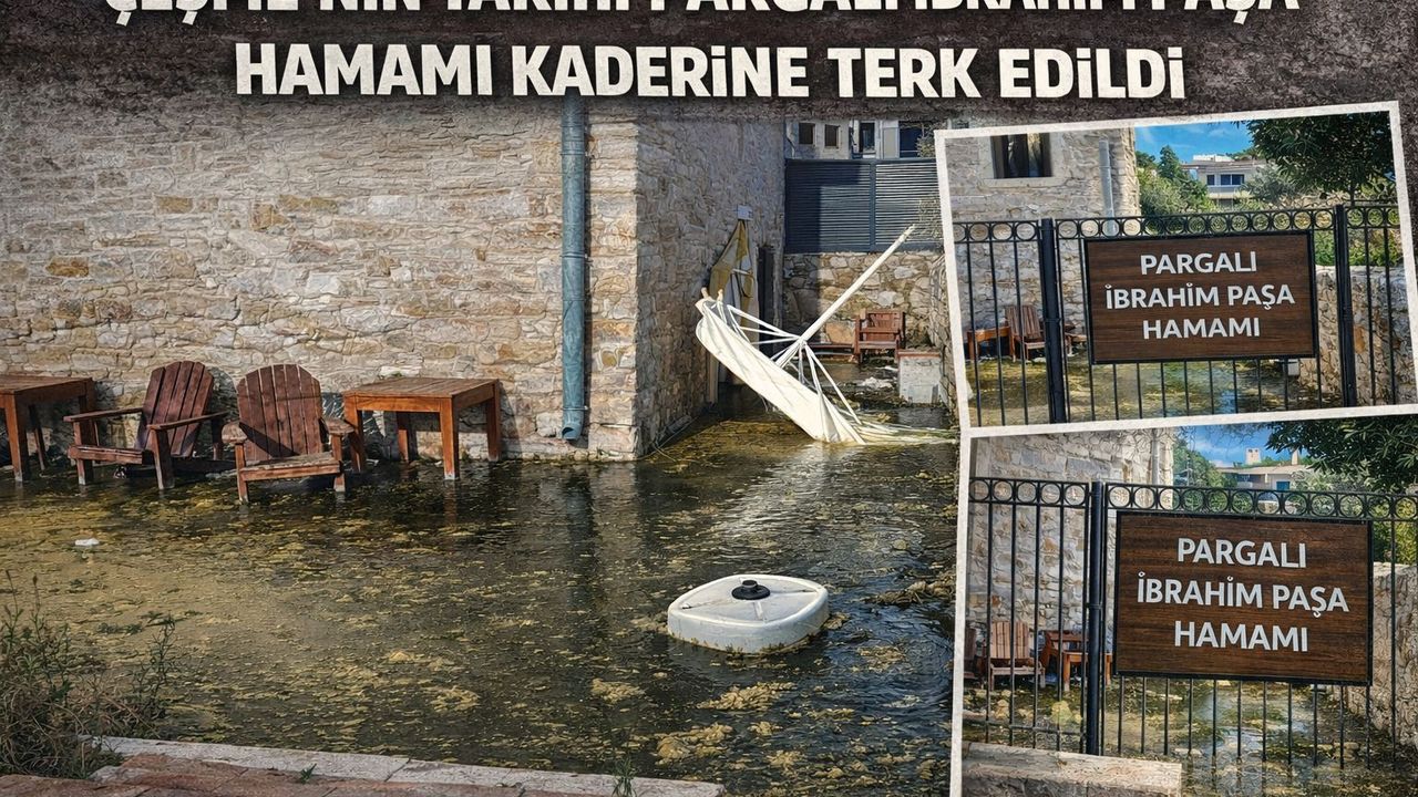 Çeşme’de, Kanuni Sultan Süleyman dönemine uzanan Osmanlı mirası Pargalı İbrahim Paşa Hamamı, kısa süre önce nedeni açıklanmayan bir kararla kapatılmıştı. Tarihi yapı, son yağan yağmurların ardından suların tahliye edilememesi nedeniyle sel suları içinde görüntülendi. Daha önce aktif olarak işletilen ve düzenli bakımı yapılan hamamın içler acısı hali, Çeşmelilerin tepkisine neden oldu.