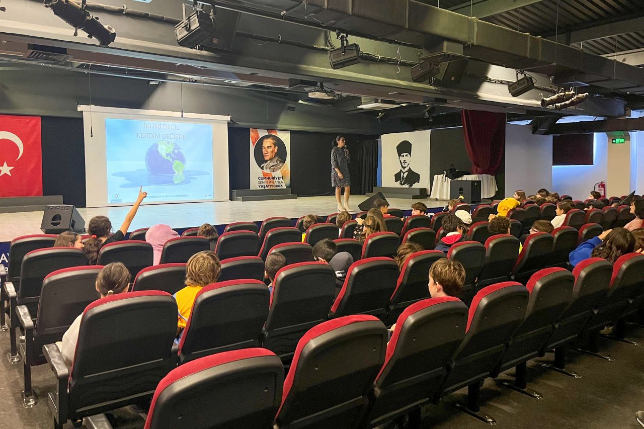 Gaziemir Belediyesi İklim Değişikliği ve Sıfır Atık Müdürü Derya Dizman Kayar tarafından verilen eğitimlerde, öğrencilere geri dönüşüm temalı kısa filmler izletilerek farkındalık kazandırıldı. Ardından sunumlarla desteklenen eğitimlerde, geri dönüşümün önemi, atıkların doğru şekilde ayrıştırılması ve doğaya olan etkileri ele alındı. Ayrıca, evde, okulda ve iş yerlerinde uygulanabilecek geri dönüşüm yöntemleriyle hem doğaya hem de ekonomiye sağlanacak katkılar detaylı şekilde aktarıldı.