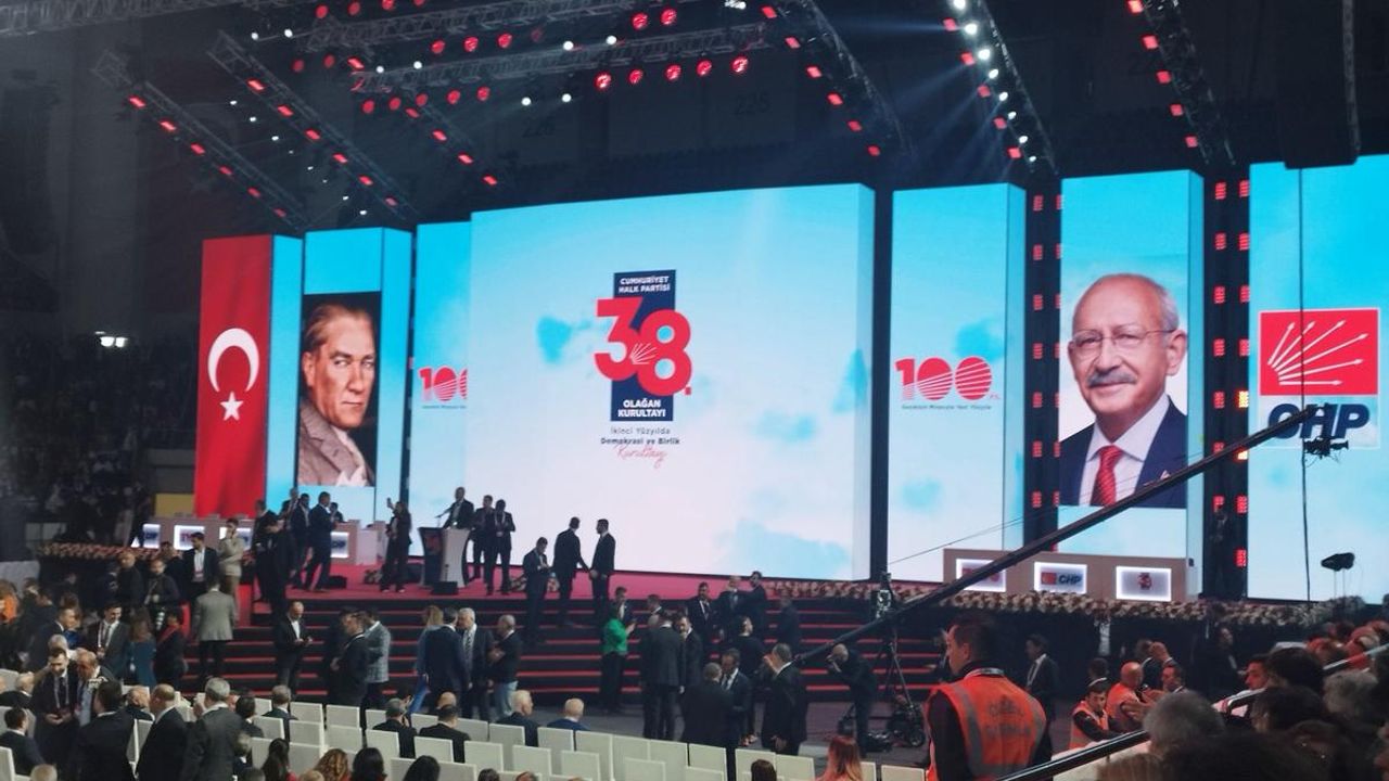 CHP’nin 38’inci Olağan Kurultayı’nın gerçekleşeceği Ankara Arena Spor Salonu, sabah saatlerinde tamamen doldu. Sahnenin sol tarafında kalan tribünler değişimcilere, sağ tarafında kalan tribün de genel merkezcilere ayrıldı.