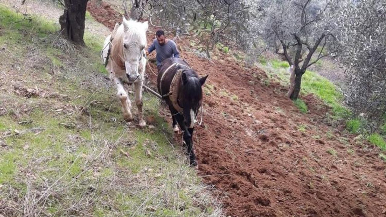 Aydın’ın yamaç ve engebeli dağlık alanlarında bulunan zeytin ve incir bahçelerinde çiftçiler arazilerini asırlık gelenekle işliyor. Teknolojiyle birlikte tarımda makineleşmenin arttığı ve 55 binin üzerinde traktöre sahip olan Aydın’ın engebeli ve dağlık arazilerinde çiftçilerin imdadına atlar yetişiyor. Bu yıl havaların ılıman gitmesiyle birlikte toprak tavını kaybetmeden işleyebilmek için adeta zamanla yarışan çiftçilerin zorlu mesaisi de başladı. Aydın’ın dağlık alanlardaki arazilerini karasaban ile işleyen çiftçiler, traktörün iş yapamadığı yerde eski yöntemlerle toprağın verimini arttırmaya çalışıyor.