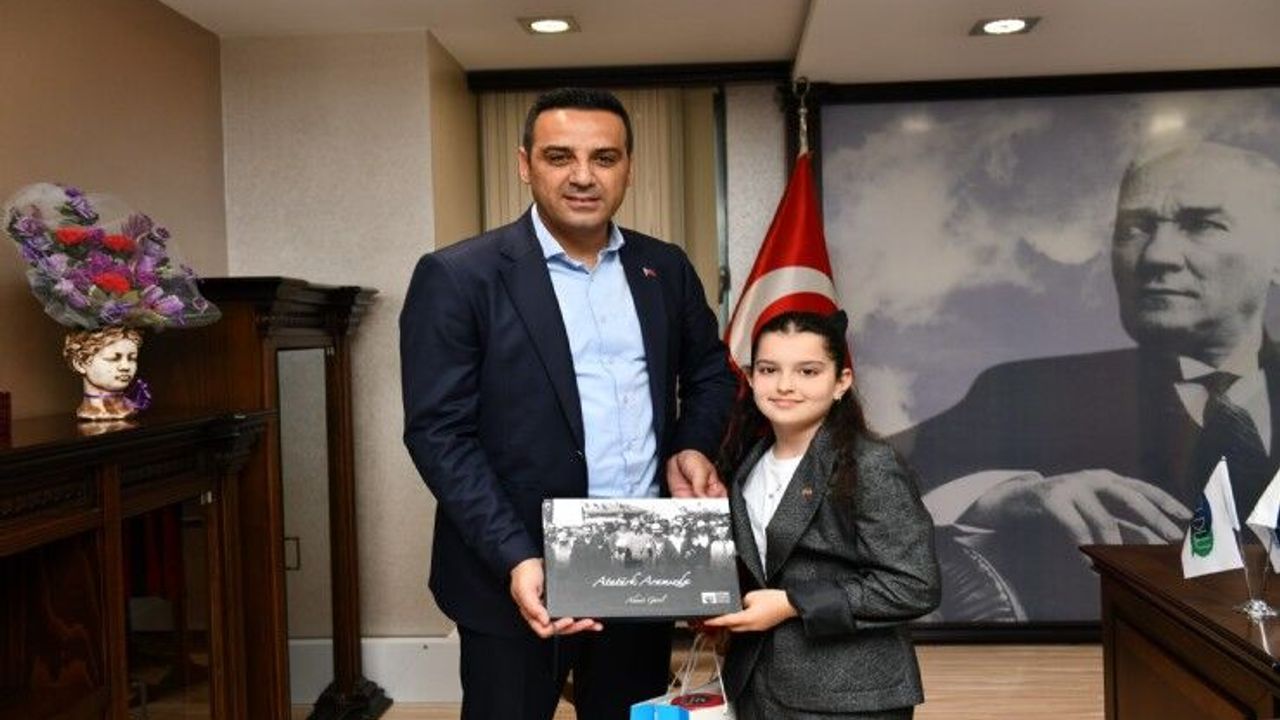 Başkan Onur Emrah Yıldız daha sonra Deren Kırkmalı’na “Bu Atatürk albümünü oğullarıma da hediye ettim. Onun izinden ayrılmayacağız. Bu sana en büyük armağanımdır. Bağımsızlık mücadelemizin ve ulusal egemenliğin adresi TBMM’nin kuruluş yıldönümü olan 23 Nisan 1920 tarihinin ruhu daima yaşayacaktır. Atatürk’ün bugünü çocuk bayramı ilan etmesi ve tüm dünya çocuklarına armağan etmesini de doğru kavramalıyız” dedi.