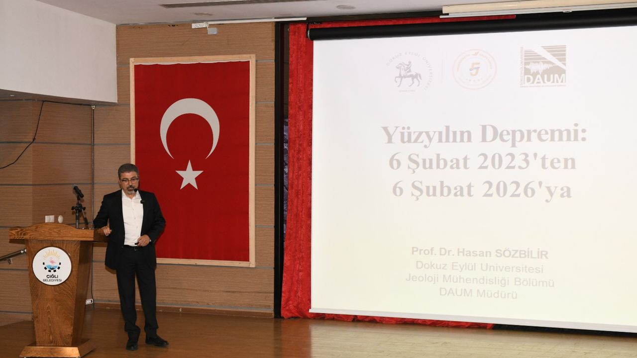 Forum öncesinde 6 Şubat depremlerinde hayatını kaybeden vatandaşların anısına 1 dakikalık saygı duruşunda bulunuldu. Etkinlik sonunda ise Çiğli Belediye Başkanı Onur Emrah Yıldız, Prof. Dr. Hasan Sözbilir’e plaket takdim etti.