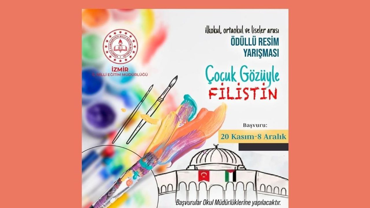 İzmir İl Milli Eğitim Müdürlüğü, ilkokul, ortaokul ve lise düzeyinde öğrenim gören öğrencilerin katılabileceği “Çocuk Gözüyle Filistin” temalı resim yarışması düzenliyor. Bu yarışmanın amacı, Filistin’de yaşanan olayları resimler aracılığıyla anlatmak ve bu konuda farkındalık oluşturmak olarak ifade ediliyor.