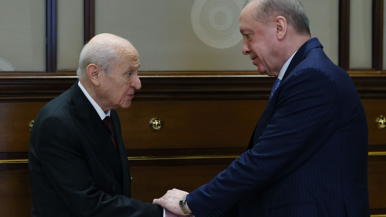 İki isim arasındaki beklenen görüşme başladı. Cumhurbaşkanı, Devlet Bahçeli ile bir araya geldi. Görüşme sonrasında açıklama yapılması bekleniyor. Cumhurbaşkanı Erdoğan ve Bahçeli’nin, Nusaybin’de Türk bayrağına karşı gerçekleştirilen saldırı, Suriye gibi konuları değerlendireceği düşünülüyor.