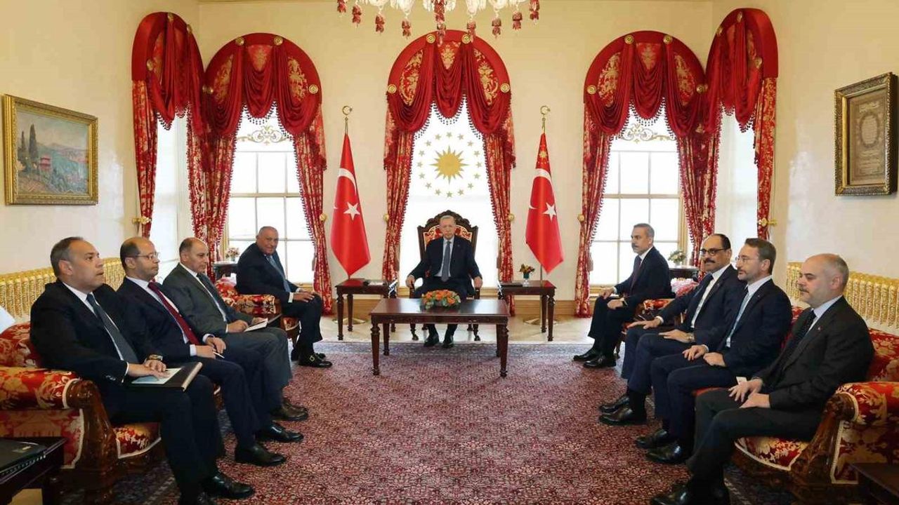 Cumhurbaşkanı Recep Tayyip Erdoğan, Mısır Dışişleri Bakanı Samih Şukri’yi Dolmabahçe Çalışma Ofisi’nde kabul etti. Cumhurbaşkanı Erdoğan görüşmede, İsrail’in Filistin halkına yönelik saldırıları sürdükçe gerilimin ve çatışmaların bölgeye yayılma riskinin bulunduğunu söyledi. Cumhurbaşkanı Erdoğan, bölgenin tamamının çatışma sarmalı içine düşmemesi için İsrail-İran gerginliğinin azaltılmasının önemli, bunun için İslam ülkelerinin birlikte çalışmasının ise elzem olduğunu ifade etti. Bölgede kalıcı çözüm için sağduyulu hareketin, stratejik aklın kullanılmasının hayati önemde olduğunu vurgulayan Cumhurbaşkanı Erdoğan, Gazze’deki İsrail zulmünün son bulması için de öncelikle acil kalıcı ateşkesin tesisinin ve insani yardımların Gazze’ye kesintisiz ulaşımının gerekli olduğunu belirtti.