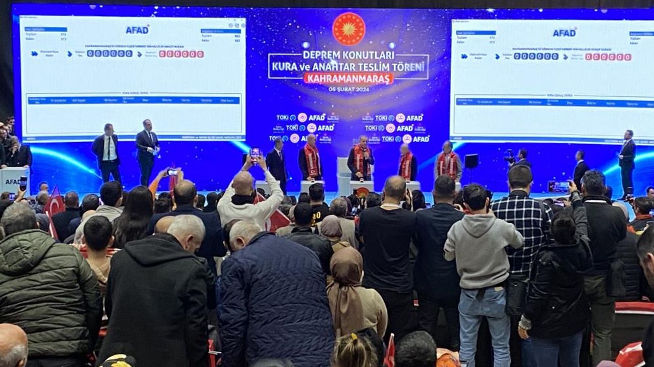 Cumhurbaşkanı Recep Tayyip Erdoğan, Kahramanmaraş Deprem Konutları Kura ve Anahtar Teslim Töreninde yaptığı konuşmada, “Cumhur ittifakı söz verir ve yapar. 1 yıl önce büyük bir felaket yaşadık. Türkiye 6 Şubat gününe büyük bir felaket ile uyandı. 7.7 büyüklüğünde ve 7.6 büyüklüğünde 2 deprem ve şiddeti onlara yakın binlerce artçı saldırı ile dünyamız başımıza yıkıldı.