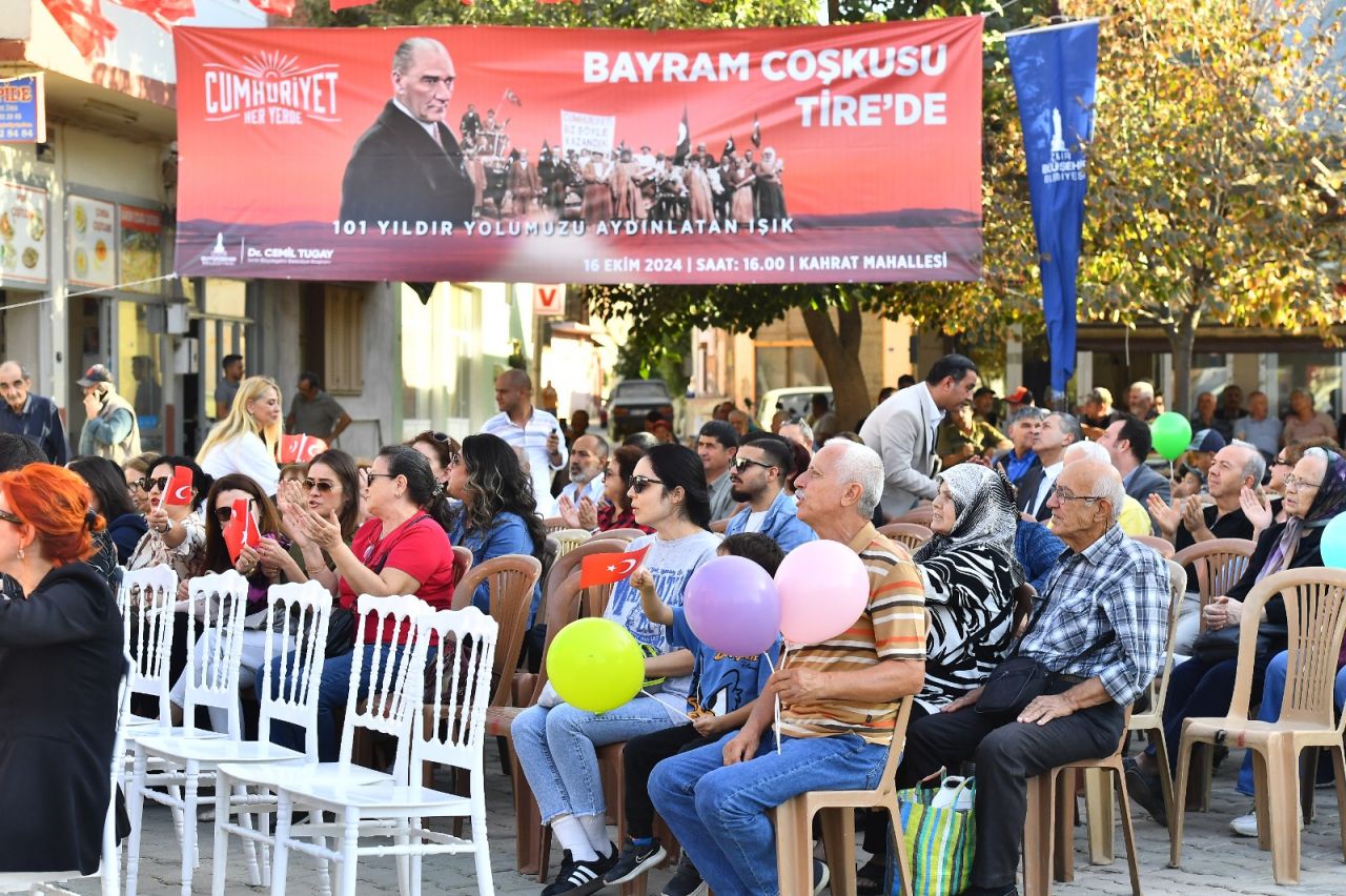Cumhuriyet Bayramı'nın 101. yılı İzmir'de büyük bir coşkuyla kutlanıyor. İzmir Büyükşehir Belediyesi'nin "Cumhuriyet Her Yerde" sloganıyla başlattığı etkinlikler, Kemalpaşa Aşağıkızılca Mahallesi'nden sonra bu kez Tire'nin Kahrat Mahallesi'nde devam etti.