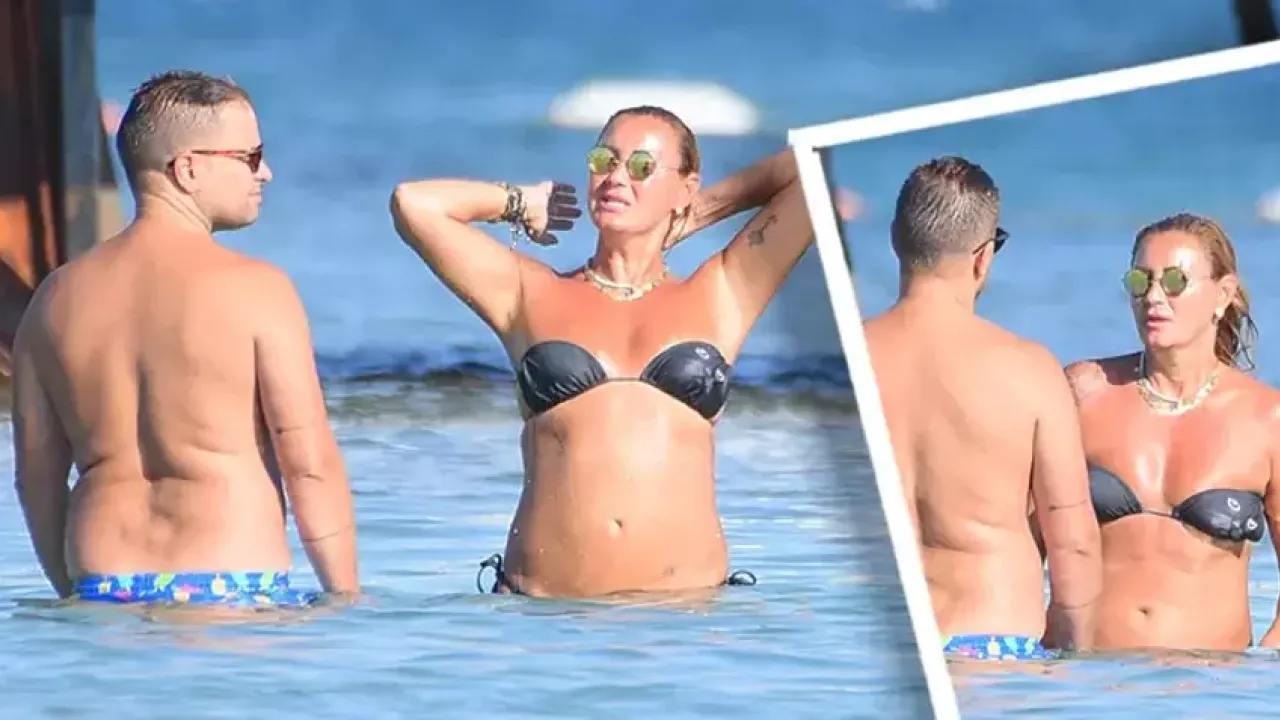 Denizde keyifli bir sohbete dalan çift, samimi halleriyle dikkat çekerken, Atacan'ın aldığı kilolar da gözlerden kaçmadı.