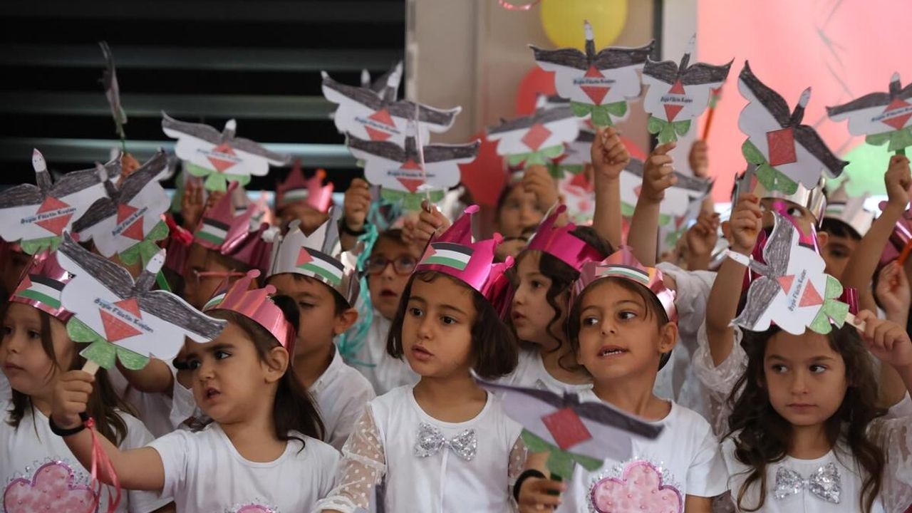 Dulkadiroğlu İlçesi Karacasu Konteyner Kentte, Kur’an kursu eğitimi alan 5-6 yaşındaki çocuklar için yılsonu etkinliği düzenlendi. Yıl boyunca Kur’an ve dini eğitimlerini alan çocuklar gösteri yapıp ilahiler söyledi. Etkinlikte çocukların kendi yaptıkları Filistin bayrağı ise dikkat çekti. Ellerinde Ayyıldız ve taçlarının üzerindeki Filistin bayraklarla sahneye çıkan çocuklar Filistin için ilahi söyledi.