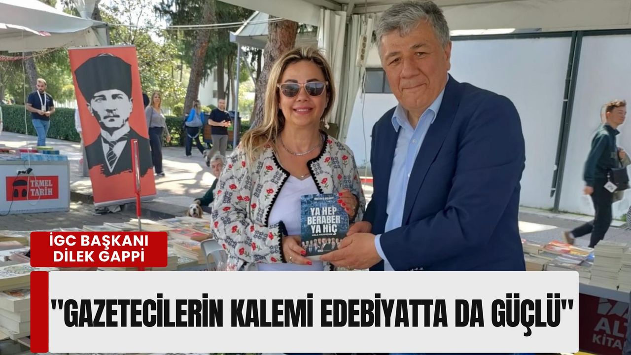 "İzmir Gazeteciler Cemiyeti Başkanı Dilek Gappi ve Yönetim Kurulu Üyesi Esat Erçetingöz, 7. İzmir Kitap Fuarı kapsamında okurlarıyla buluşan cemiyet üyelerini ziyaret etti. Fuar alanında imza etkinlikleri gerçekleştiren gazeteci-yazar Tülay Cengiz, Oğuz Tümbaş ve Mustafa Balbay ile bir araya gelen Gappi, gazetecilerin kültürel mirasa sunduğu katkının önemine dikkat çekti. Gappi, 'Üyelerimizin edebiyat dünyasındaki varlığı bizler için büyük bir gurur kaynağı' ifadelerini kullandı."