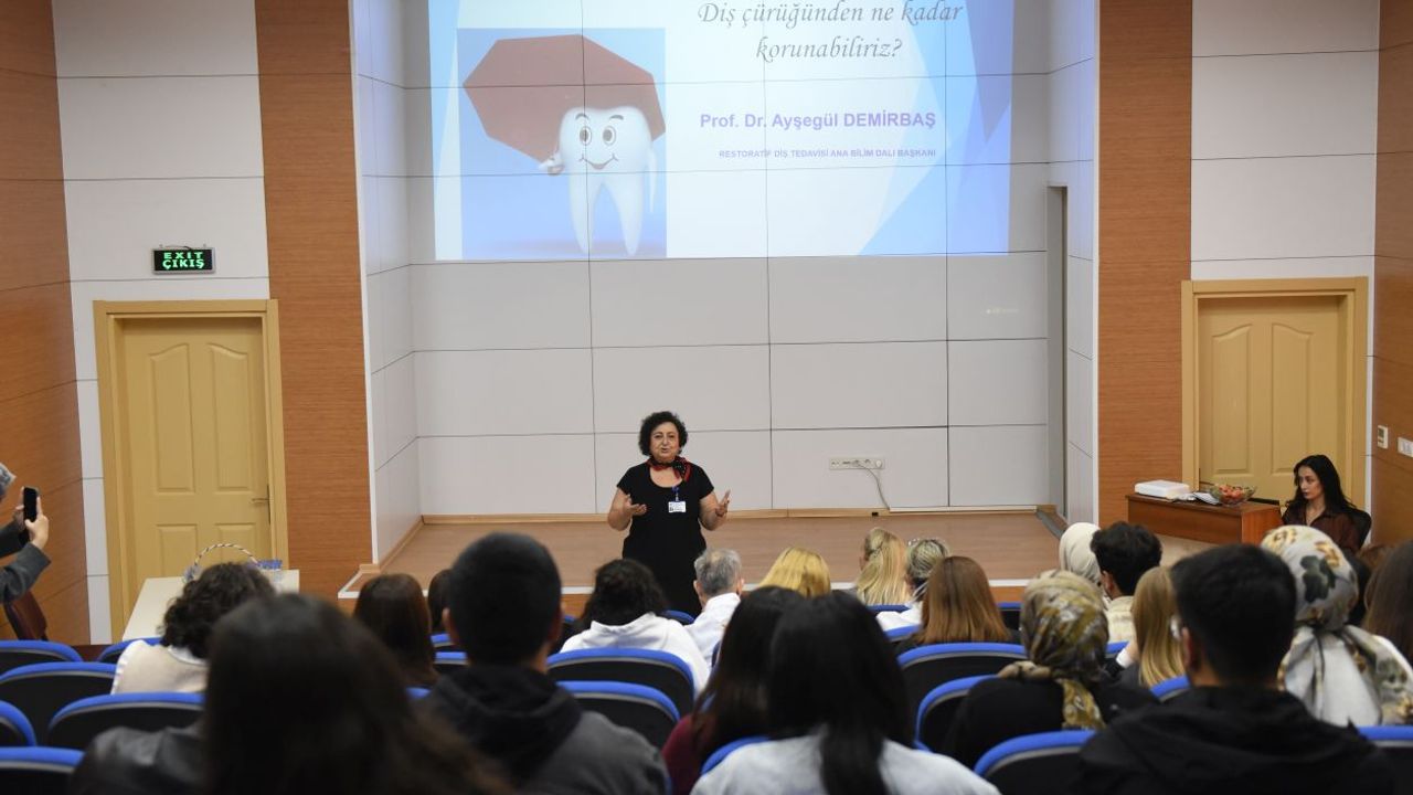 Etkinlik, Diş Hekimliği Fakültesi Seminer Salonu’nda gerçekleştirildi ve akademik topluluğun yanı sıra öğrenci ve ilgililerin yoğun katılımıyla dikkat çekti.