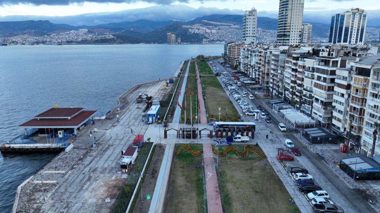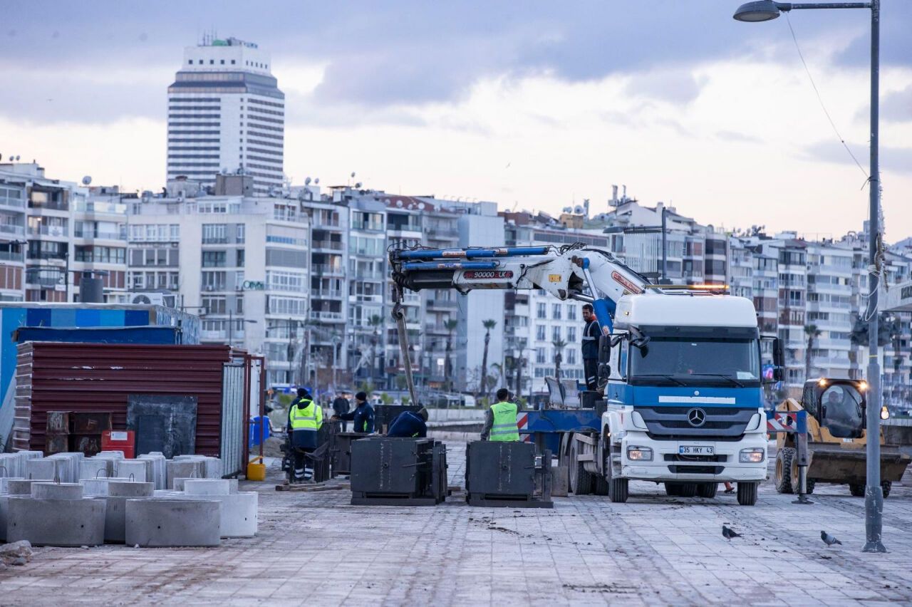 İzmir Büyükşehir Belediyesi, Kordon’u baştan aşağı düzenleyecek çalışmalarda sona geldi. Çalışmalar kapsamında deniz taşkınlarını önleyecek geçici fırtına duvarı yapımı tamamlanırken Kordon’un bakım, onarım ve peyzaj çalışmaları tüm hızıyla devam ediyor. Çalışmalar kapsamında, Kordon boyunca, zemin yenilemesi, kent mobilyaları ve sosyal donatı malzemelerinin, çocuk oyun alanlarının montajı yapılacak. Park ve Bahçeler Dairesi Başkanlığı tarafından fırtına duvarı ve çevresinde çok sayıda bitki ve ağaç dikimiyle alan yemyeşil bir görünüme kavuşturulacak. Çalışmaların tamamlanmasıyla Kordon, baştan sona yenilenerek uzun yılların yarattığı yorgun yapısından kurtulmuş olacak.