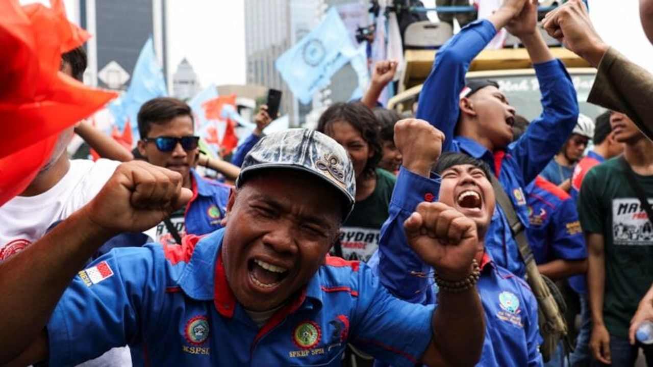 Endonezya’nın başkenti Cakarta’da işçiler, kutlamalara geleneksel Buto maskeleriyle katıldı.