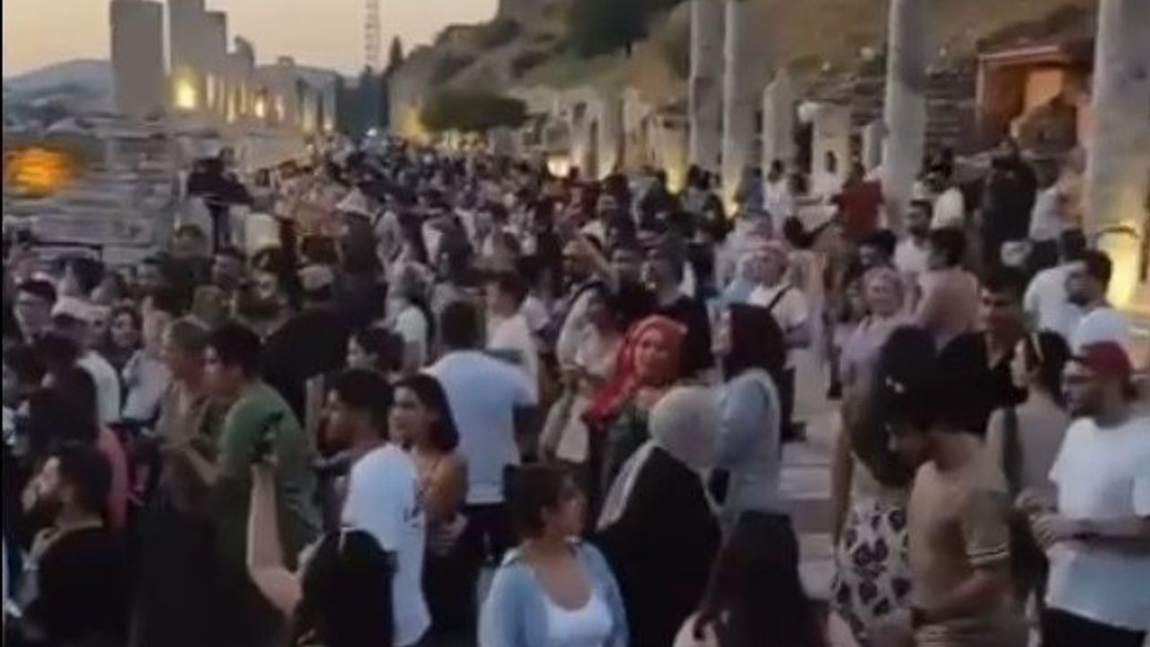 Bayram tatilinde Efes Antik Kenti’ni ziyaret etmek için alana gelen vatandaşlar, iddiaya göre Celsus Kütüphanesi’nin gece müzeciliğine kapalı olacağı yazısıyla karşılaştı. Celsus Kütüphanesi önünde masaların hazırlandığını ve özel bir tur şirketinin organizasyonu olduğu anlaşılınca vatandaşlar duruma tepki gösterdi.