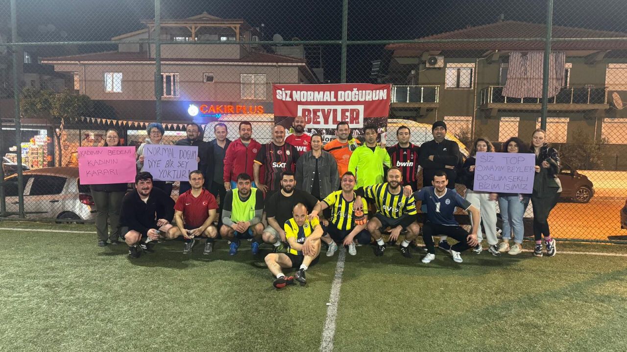 Maçı saha kenarından izleyen izleyiciler de sessiz kalmadı. Ellerindeki “Kadının bedeni, kadının kararı”, “Siz top oynayın beyler, doğum şekli bizim işimiz” ve “Normal doğum diye bir şey yoktur” yazılı dövizlerle maç boyunca takıma destek verdiler.