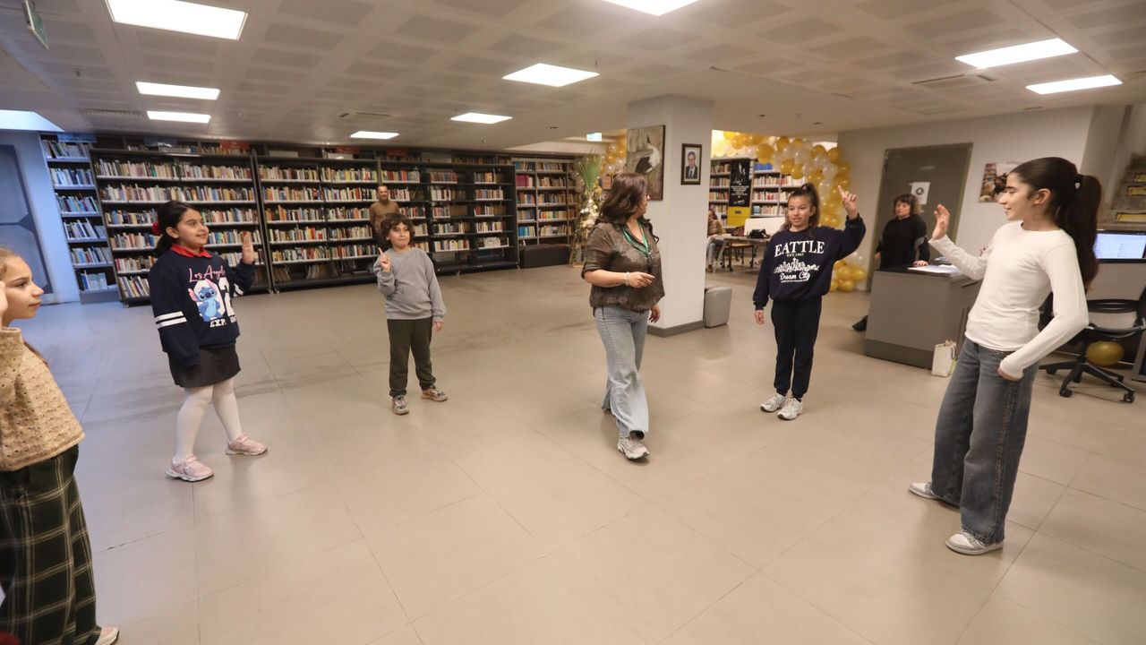 “Kütüphanede Renkli Bir Gün” atölyesinde çocuklar hayal güçlerini tuvale yansıttı. Tiyatro ve Yaratıcı Drama Eğitmeni Gülhan Ayhan’ın düzenlediği drama atölyelerinde ise farklı yaş gruplarındaki çocuklar, kütüphanede geçen kurgusal bir maceranın parçası oldu ve çeşitli sosyal beceriler kazandı.