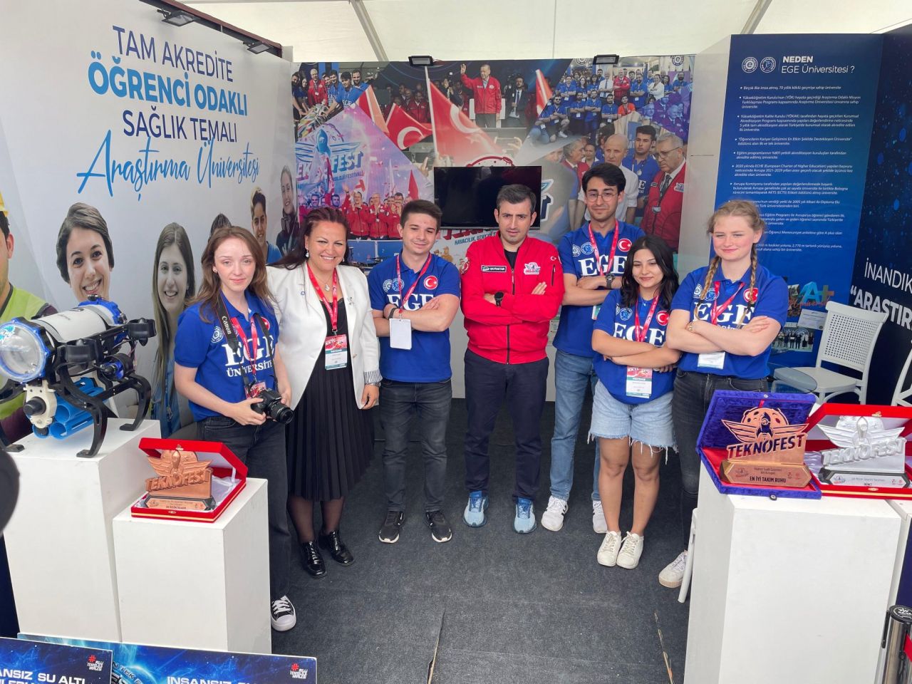 “Her TEKNOFEST’te olduğu gibi, bu yıl da proje takımlarımız millî teknoloji yenilikçi projeler geliştirdiler. Çalışmalarımız teknoloji tutkunları tarafından yakından ilgi gördü. Festival süresince üniversitemizin bilimsel birikimini geleceğe yön veren öğrencilerimizin yaratıcı, yenilikçi projeleri, öğretim üyelerimizin rehberliği ve bilimsel birikimimizle; yerli ve millî teknoloji hamlesine katkı sunmanın gururunu hep birlikte yaşadık. Gençlerimizin teknolojiye olan tutkularına tanıklık ettik. Üniversitemiz standını önceki dönem Sanayi ve Teknoloji Bakanımız Sayın Mustafa Varank, Baykar Yönetim Kurulu Başkanı Sayın Selçuk Bayraktar, İstanbul Teknik Üniversitesi Rektörü Sayın Dr. Hasan Mandal, TÜBİTAK MAM Başkanı ve Cumhurbaşkanlığı Yerel Yönetim ve Afet Politikaları Kurulu Üyesi Sayın Prof. Dr. Burcu Özsoy ziyaret ederek geleceğe yön veren gençlerimizin projelerine büyük ilgi gösterdi. Ayrıca bilimin eğlenceli dünyasını keşfetmeye gelen minik misafirlerimiz, standımızda hem öğrendi hem de keyifli anlar yaşadılar. Ege Üniversitesi standımızda ülkemizin kıymetli bürokratlarını, değerli üniversite rektörlerimizi, 7’den 70’e her yaştan ziyaretçiyi ağırlamaktan büyük bir gurur duyduk”
