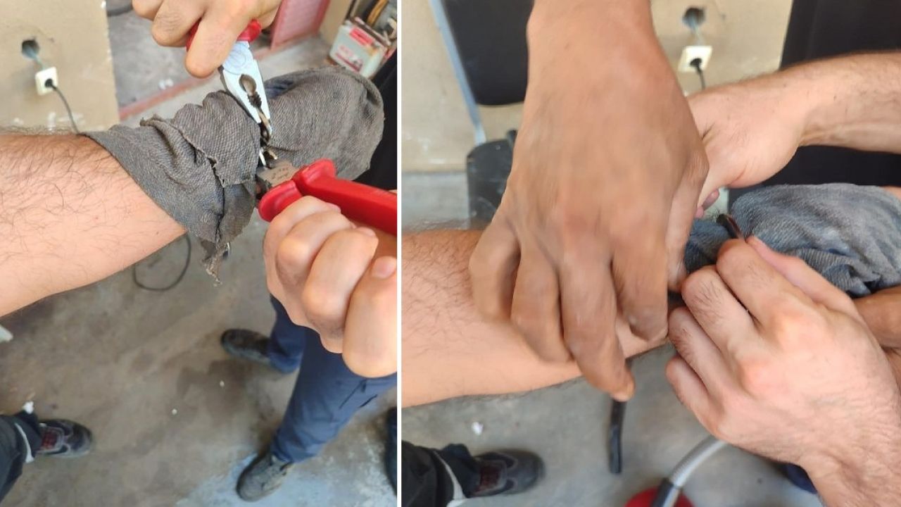 Eline kelepçe sıkışan vatandaş, panik içinde itfaiye istasyonuna giderek yardım talep etti. İtfaiye ekipleri, durumu hızlıca değerlendirdikten sonra gerekli ekipmanlarla müdahalede bulundu. Kelepçe, itfaiye ekipleri tarafından kesilerek vatandaşın elinden çıkarıldı. Kelepçenin sorunsuz bir şekilde çıkarılmasıyla vatandaş, derin bir nefes alarak rahatladı.