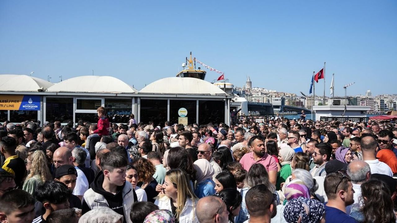 İstanbul’da bayramın son gününde güneşli havayı fırsat bilen vatandaşlar Eminönü’ne akın etti. Zaman zaman vatandaşlar yoğunluk nedeniyle adım dahi atamadı. Kalabalık nedeniyle Sirkeci ve Eminönü’nde vatandaşlar güçlükle yürürken bazı vatandaşların ise uzun kuyrukları beklemeyerek demir korkuluklardan araç trafiğinin olduğu yola atladı. Vapur iskelesi ile tramvay istasyonu arasındaki kalabalık caddeye kadar uzanırken, trafik polislerinin ise araçlar arasında yürüyen yayaları uyarması dikkat çekti.