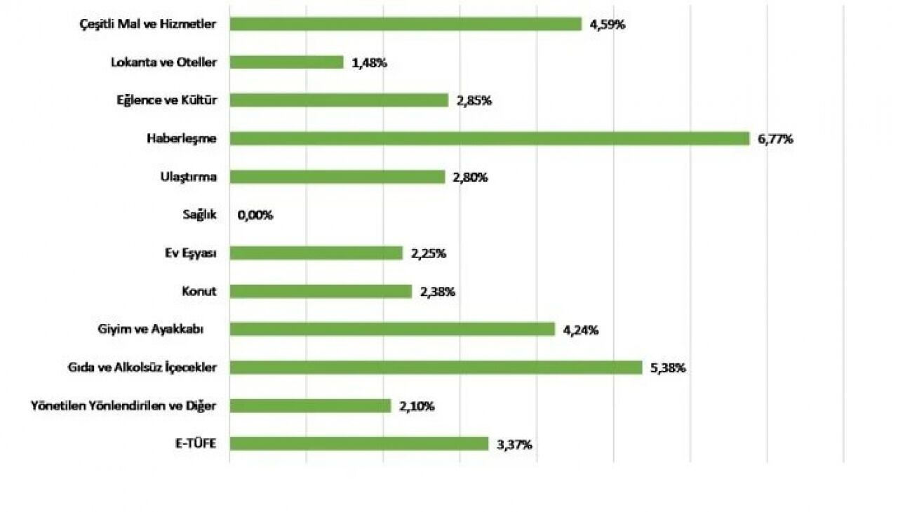Alt gruplar incelendiğinde, şubat ayında en yüksek enflasyon artışı yüzde 6,77 ile haberleşme grubunda gerçekleşti. Bu grubu, yüzde 5,38 ile gıda ve alkolsüz içecekler takip ederken, çeşitli mal ve hizmetler grubundaki fiyat artışı ise yüzde 4,59 olarak ölçüldü.
