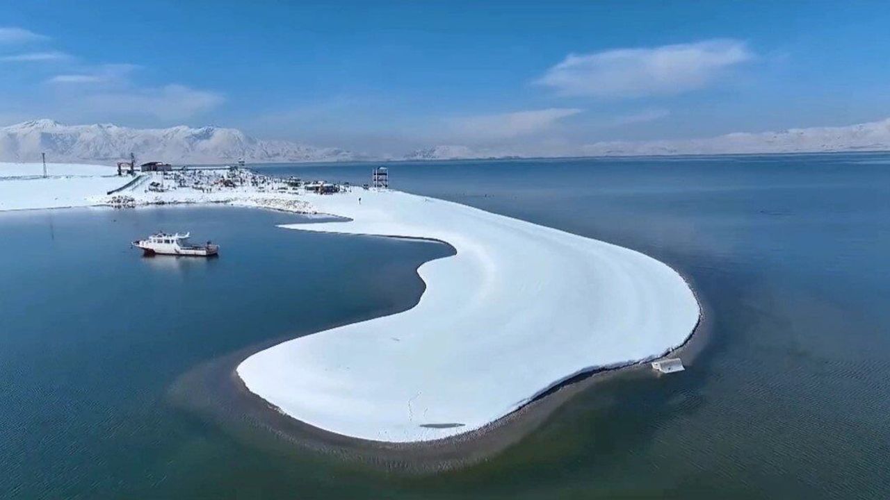 Kar yağışıyla birlikte İpekyolu ilçesi sınırları içerinde bulunan ve yaklaşık 250 kuş türüne ev sahipliği yapan Erçek Gölü ve sulak alanı beyaz örtüyle kaplandı.