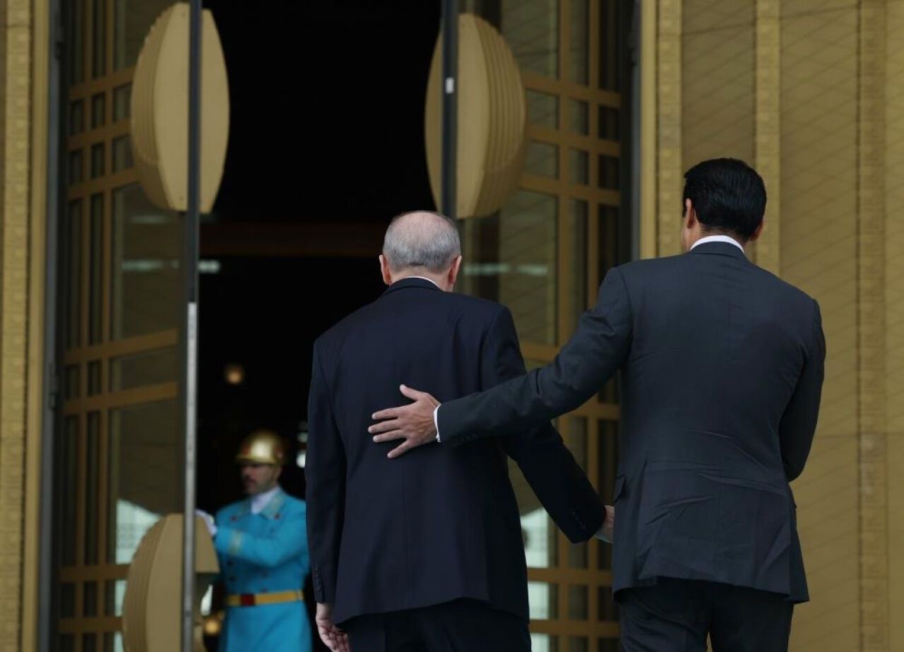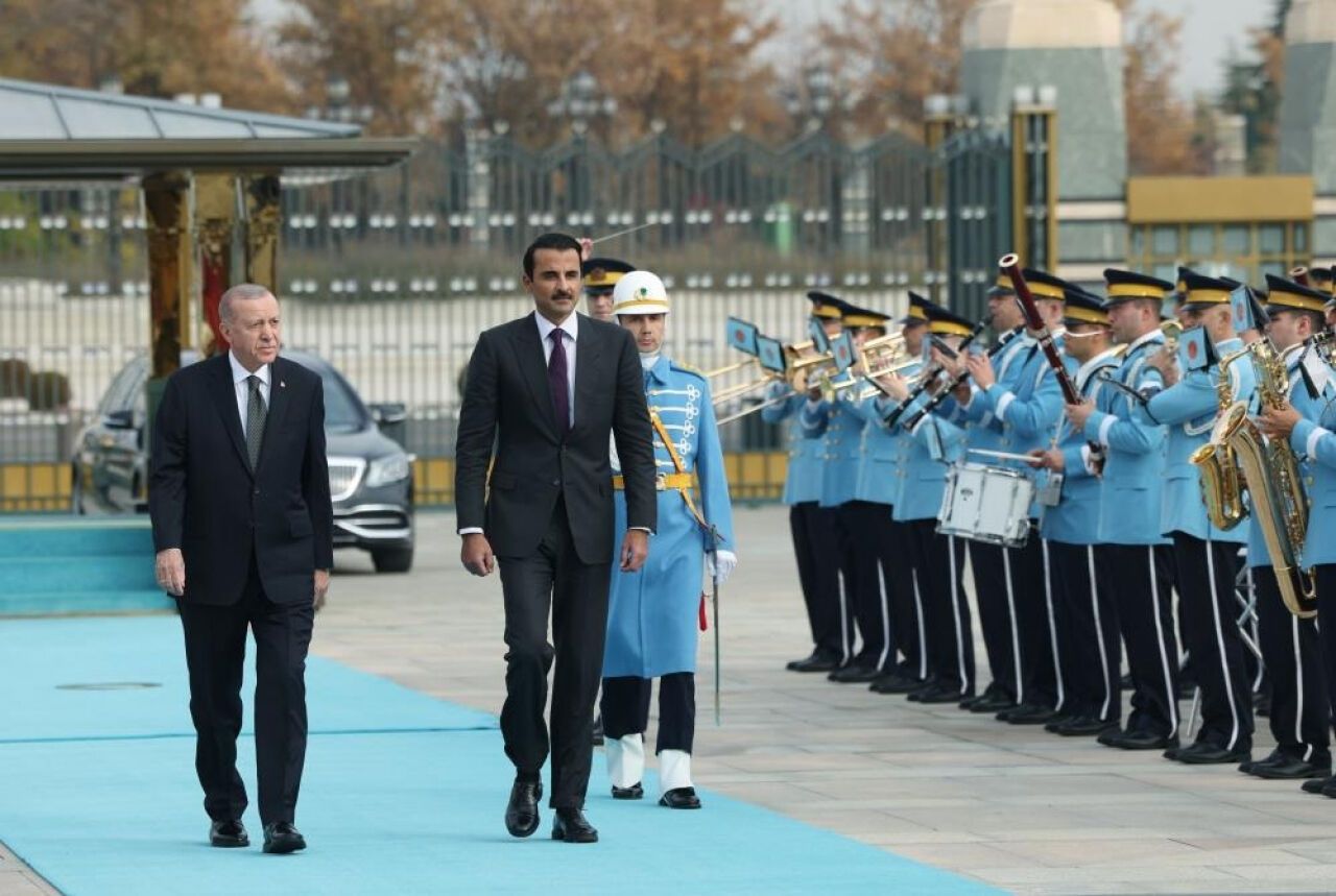 Cumhurbaşkanı Recep Tayyip Erdoğan, Katar Emiri Şeyh Temim Bin Hamad El Sani'yi Cumhurbaşkanlığı Külliyesi'nde düzenlenen törenle karşıladı.