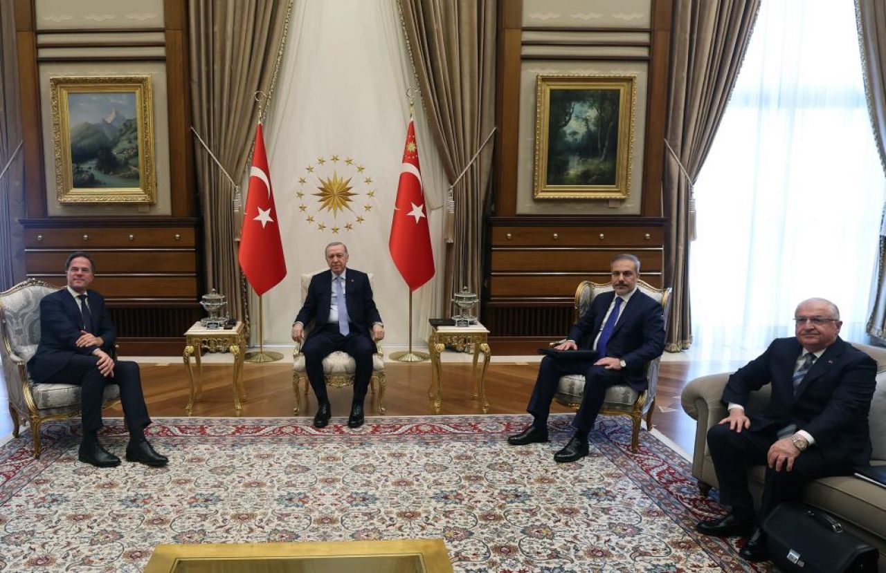 Cumhurbaşkanı Recep Tayyip Erdoğan, NATO Genel Sekreteri Mark Rutte'yi Cumhurbaşkanlığı Külliyesi'nde kabul etti. Saat 10:00 civarında başlayan görüşme, yaklaşık bir saat sürdü. Toplantıya Dışişleri Bakanı Hakan Fidan ve Milli Savunma Bakanı Yaşar Güler de katıldı.
