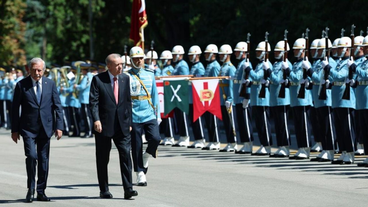Tören mangasını selamlayan Cumhurbaşkanı Erdoğan, Meclis'e girişinde Filistin Devlet Başkanı Mahmud Abbas ile bir süre sohbet etti. Cumhurbaşkanı Erdoğan, Filistin Devlet Başkanı Abbas ve TBMM Başkanı Numan Kurtulmuş ile fotoğraf çektirdi. Daha sonra TBMM Genel Kurul Salonu'ndaki yerini alan Cumhurbaşkanı Erdoğan, Filistin Devlet Başkanı Abbas'ın konuşmasını takip etti.