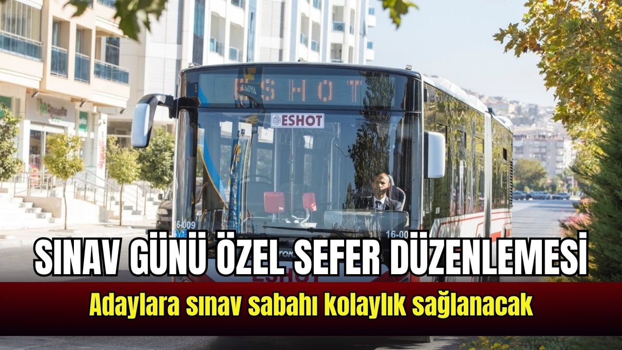 Sınav sabahı saatlerinde kullanıma açık olacak özel seferlerle ilgili saat bilgileri ve güzergah detaylarına www.eshot.gov.tr adresinden ulaşılabilecek.