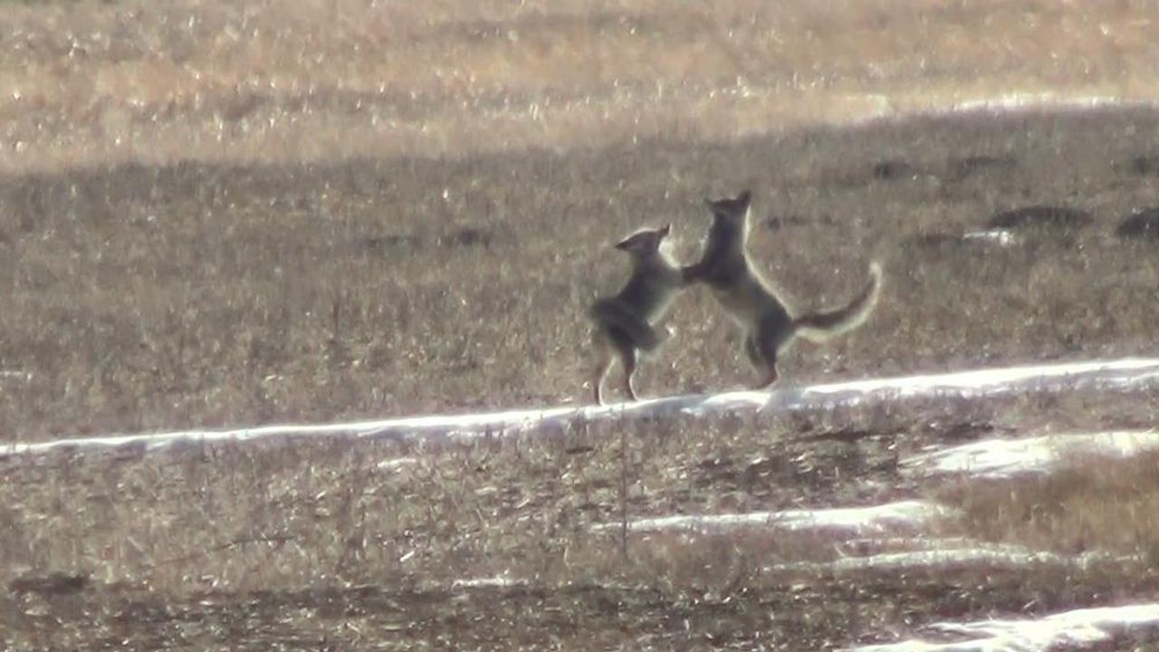 Kars merkez Cumhuriyet köyü bölgesinde arazide güneşli havada 2 tilkiyi gören vatandaş, o anları cep telefonuyla anbe an kaydetti. Vatandaş tarafından kaydedilen görüntüde, 1 tilki karın üzerinde yatarken, diğer tilki ise tüylerini kabartarak yanına yaklaşıyor.