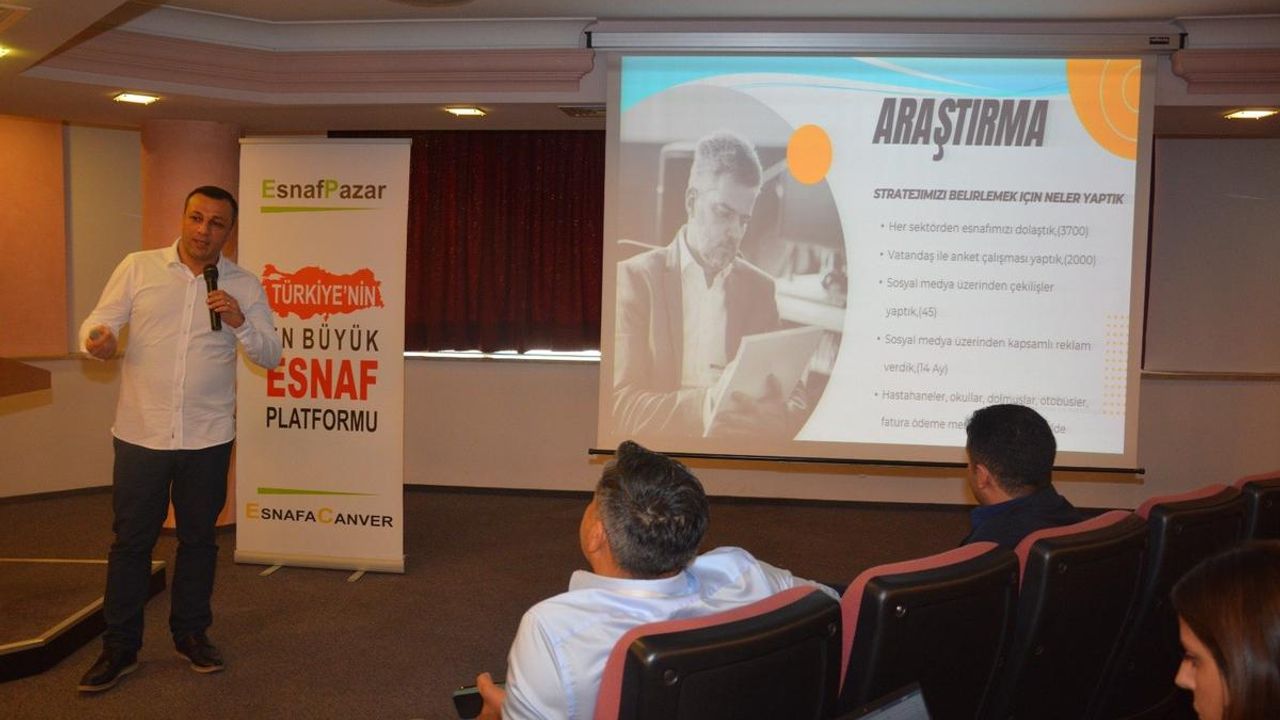Oda başkanlarına sunum hazırlayan ESNAFACANVER E-ticaret A.Ş. Genel Müdürü Yaşar Yenikale, amaçlarının online ticaret konusunda esnaf sanatkarların önünü açmak ve online alışveriş siteleri ile çalışan esnafa yeni bir alternatif sunmak olduğunu söyledi. Yenikale, “Esnaf sanatkarları diğer sitelerin ağır komisyon yüklerinden kurtarmak için İESOB ile Esnafacanver e-ticaret A.Ş. tarafından önemli bir projeyi yürütüyoruz” dedi.
