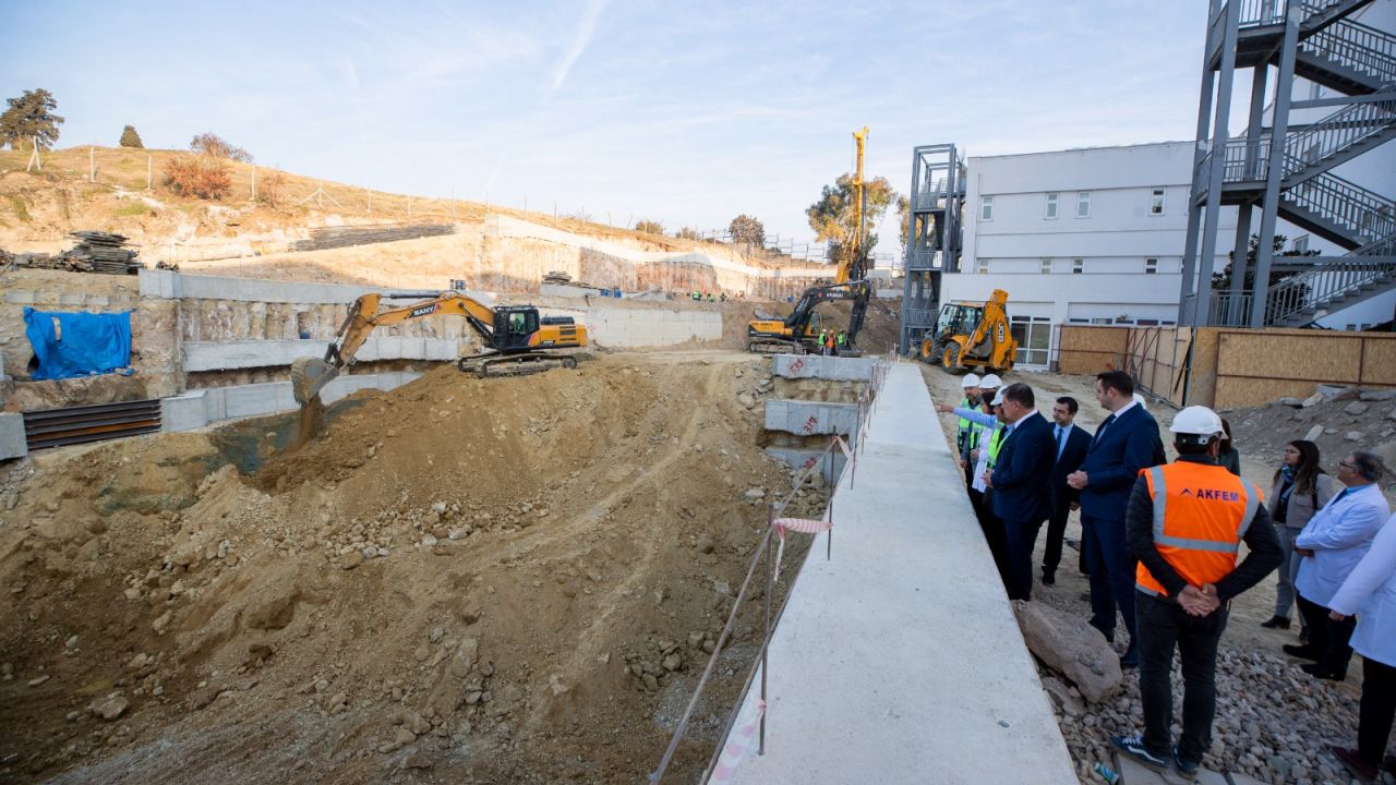 Türkiye'nin ilk ve tek belediye hastanesi İzmir Büyükşehir Belediyesi Eşrefpaşa Hastanesi, hastalarına daha kaliteli hizmet vermek amacıyla çalışmalarına devam ediyor. Yeni ek hizmet binasının inşaatı hızla yükselirken, İzmir Büyükşehir Belediye Başkanı Dr. Cemil Tugay hem çalışmaları yerinde incelemek hem de göreve yeni gelen Başhekim Doç. Dr. Başak Bayram'ı tebrik etmek amacıyla Eşrefpaşa Hastanesi'ni ziyaret etti. Başhekim Bayram'la mevcut sağlık hizmetlerini değerlendiren Başkan Tugay, sağlık alanında yapılması planlanan projeler hakkında da görüştü. Hastane ziyaretinde İzmir Büyükşehir Belediyesi Genel Sekreter Yardımcısı Prof. Dr. Pınar Okyay, Genel Sekreter Yardımcısı Çağatay Güç, Sağlık İşleri Dairesi Başkanı Ahmet Soner Emre, Yapı İşleri Dairesi Başkanı Onur Açık ve hastane yöneticileri yer aldı.