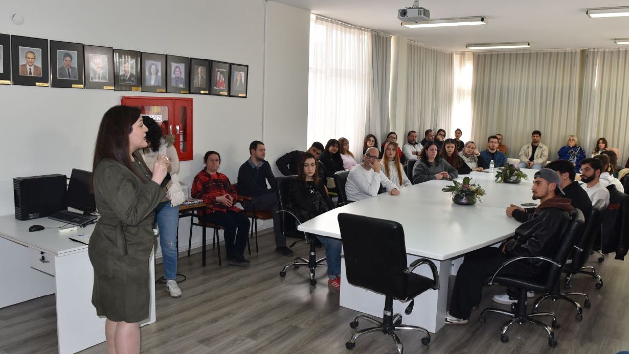 Fakültenin Toplantı Salonu’nda gerçekleştirilen etkinliğe, Fakülte Dekanı Prof. Dr. Bilgehan Gültekin, Dekan Yardımcısı Prof. Dr. Füsun Topsümer, akademisyenler, idari personel ve öğrenciler katıldı.