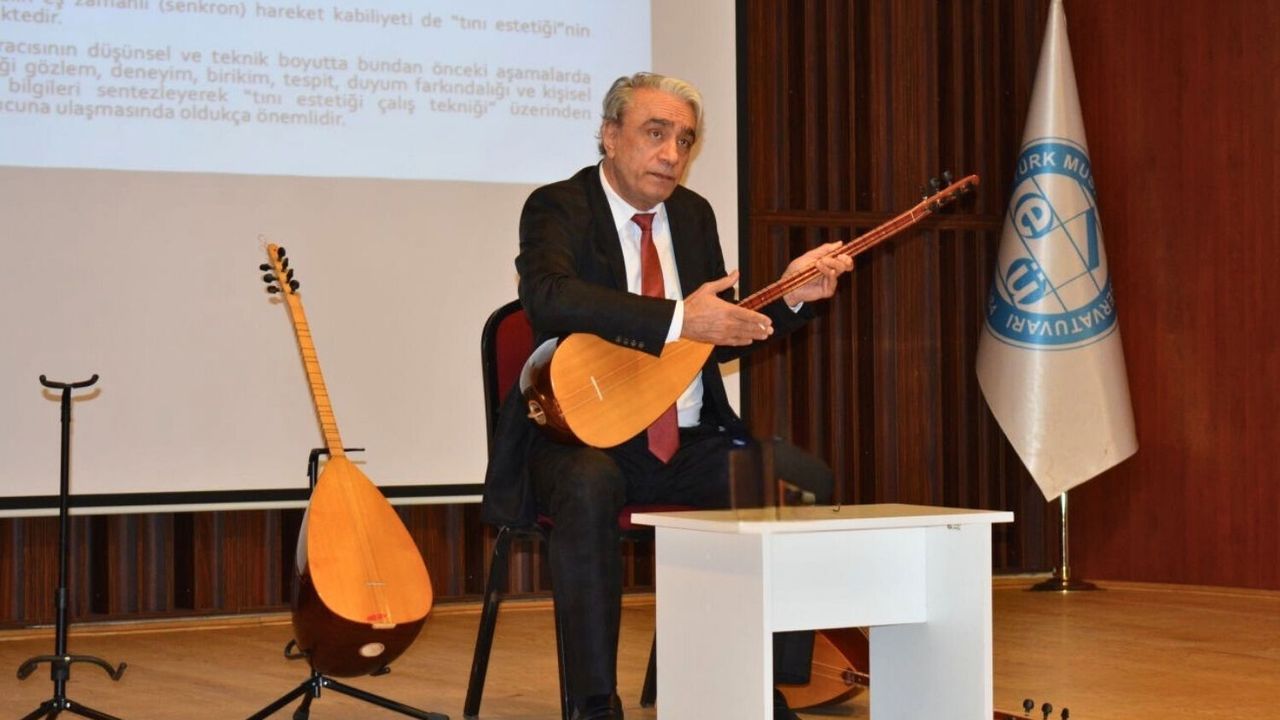 Etkinliğin açılış konuşmasını yapan Prof. Dr. Ali Maruf Alaskan, müziğin yalnızca teknik bir icra olmadığını vurgulayarak, katılımcılara farklı bir bakış açısı sundu. Alaskan, “Hepimizin çocukluğundan beri peşine düştüğü, sevdasına tutulduğu müziksel notaları, sesleri, perdeleri ve dokunuşları bugün başka bir pencereden, akademik bir bakış açısıyla ve daha bilimsel bir yaklaşımla ele alacağız. Bastığınız perdede parmağınızın kapladığı alanın etkisinden, çaldığınız sazın yapıldığı malzemeye; perdenin bağlandığı materyalden vücudunuzda biriken elektriğe ve hatta giydiğiniz kıyafetin kinetik enerjisine kadar birçok unsurun çıkarmak istediğiniz ton üzerinde ne kadar etkili olduğunu tartışacağız” dedi.