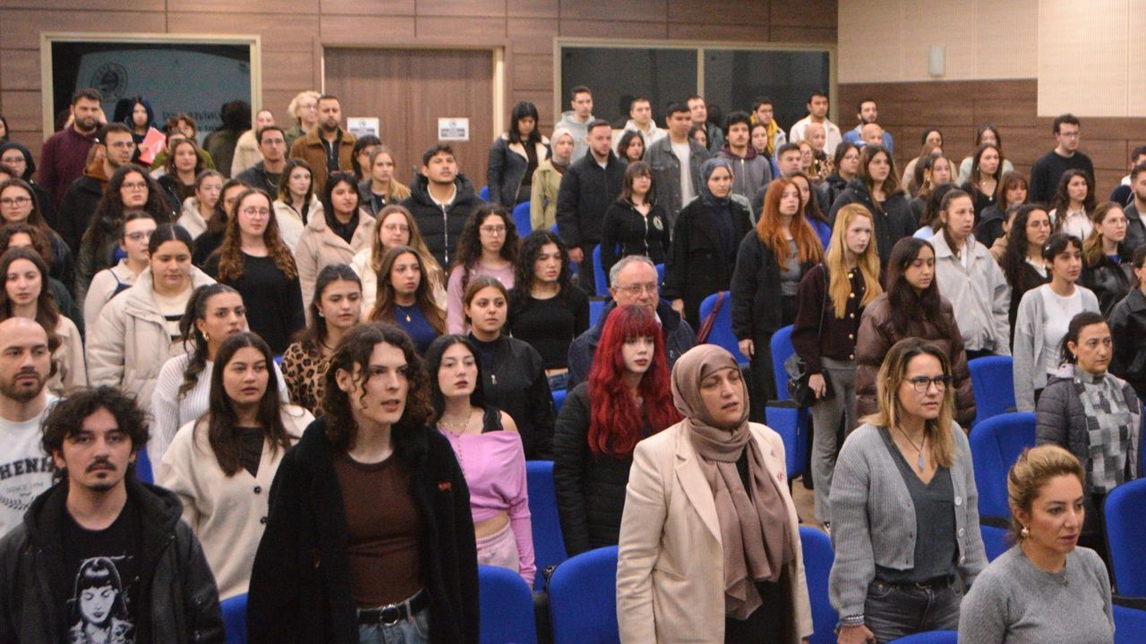 İzmir Şiddet Önleme ve İzleme Merkezi (ŞÖNİM) Müdürü Güliz Kuli’nin konuşmacı olarak yer aldığı konferansa; EKAM Müdürü Doç. Dr. Vildan Koçoğlu Gündoğdu, Merkez Müdür Yardımcıları Doç. Dr. İlkay Südaş ve Dr. Öğr. Üyesi Sinem Utanır Altay’ın yanı sıra akademisyenler, idari personel ve öğrenciler katıldı. Konferansta, toplumsal cinsiyet eşitliği perspektifiyle şiddet mağdurlarının yasal hakları ve koruyucu mekanizmalar vaka analizleri üzerinden ele alındı.
