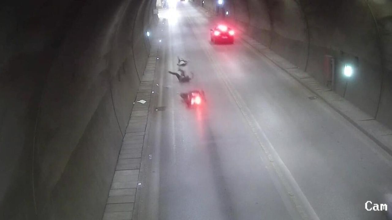 Motosikletin ve üstündekilerin sürüklendiği anları güvenlik kameraları saniye saniye kaydetti.
