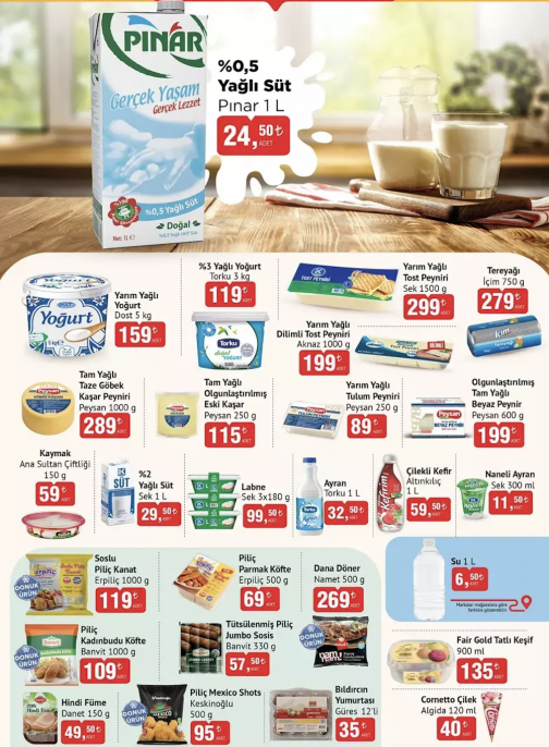 - Pınar %0,5 Yağlı Süt 1 L 24,50 TL