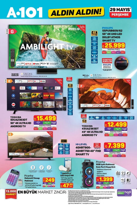 - Toshiba 50' 4K Ultra HD Android Tv 15.499 TL