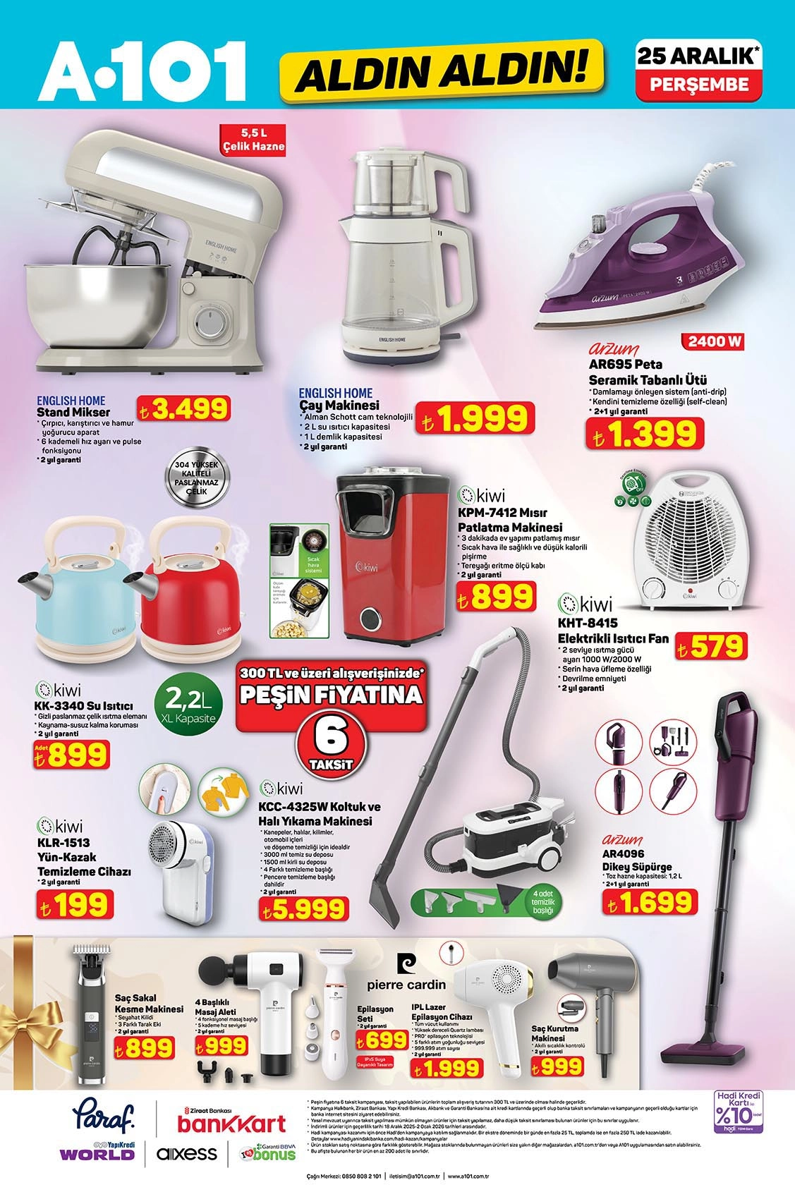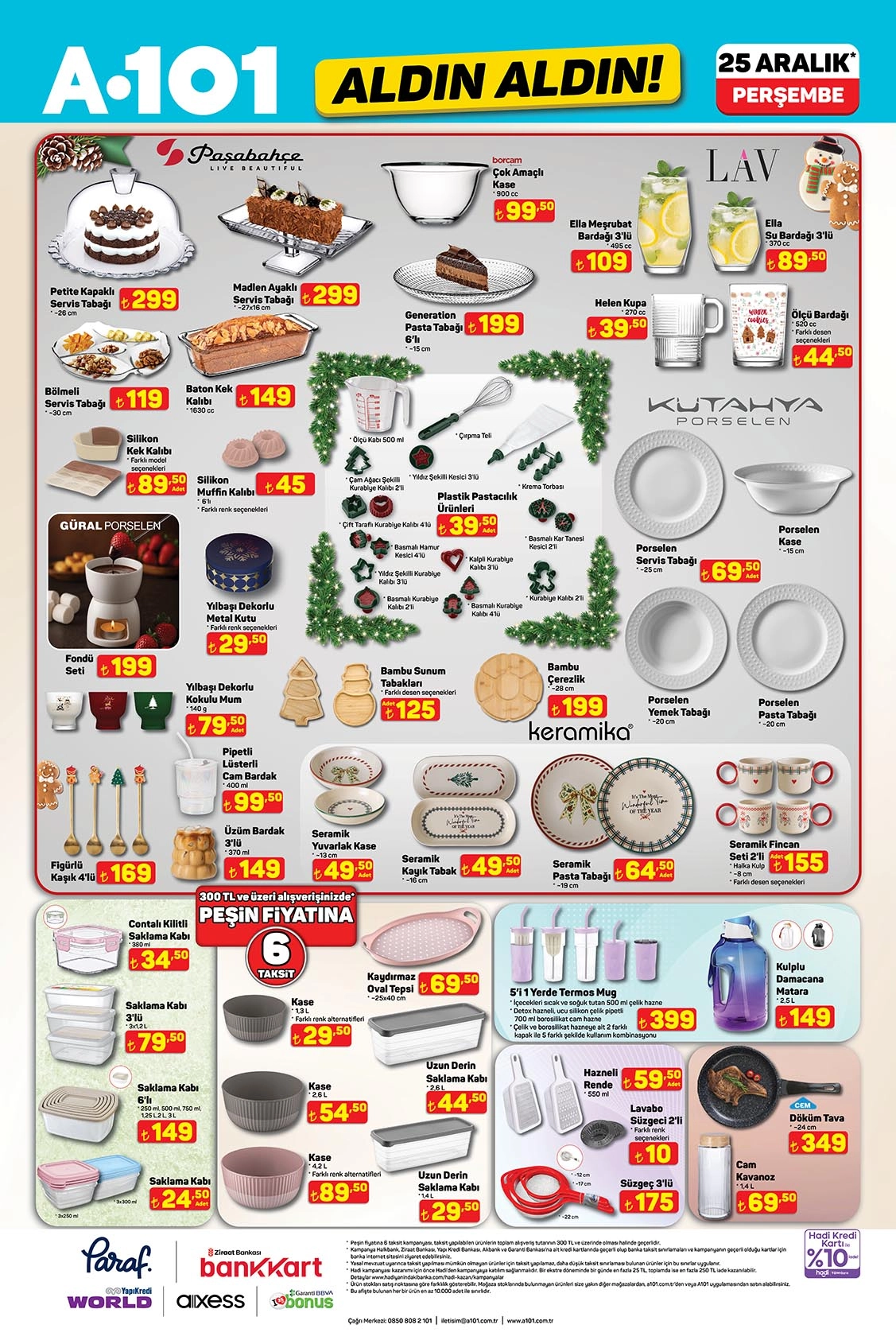 A101 Aldın Aldın aktüel ürünleri, 25 Aralık Perşembe günü tüm A101 mağazalarında ve stoklarla sınırlı olarak satışa sunulacak. Katalogda yer alan ürünlerin yoğun ilgi görmesi bekleniyor.