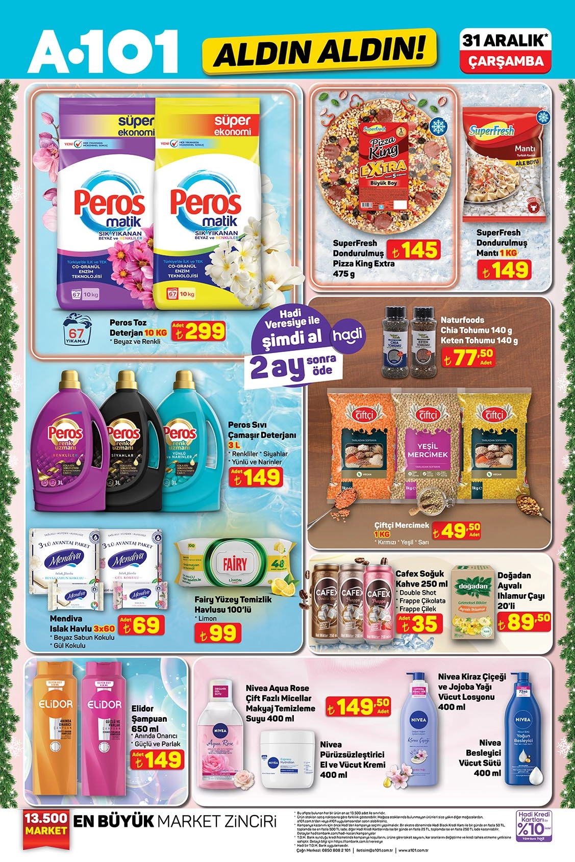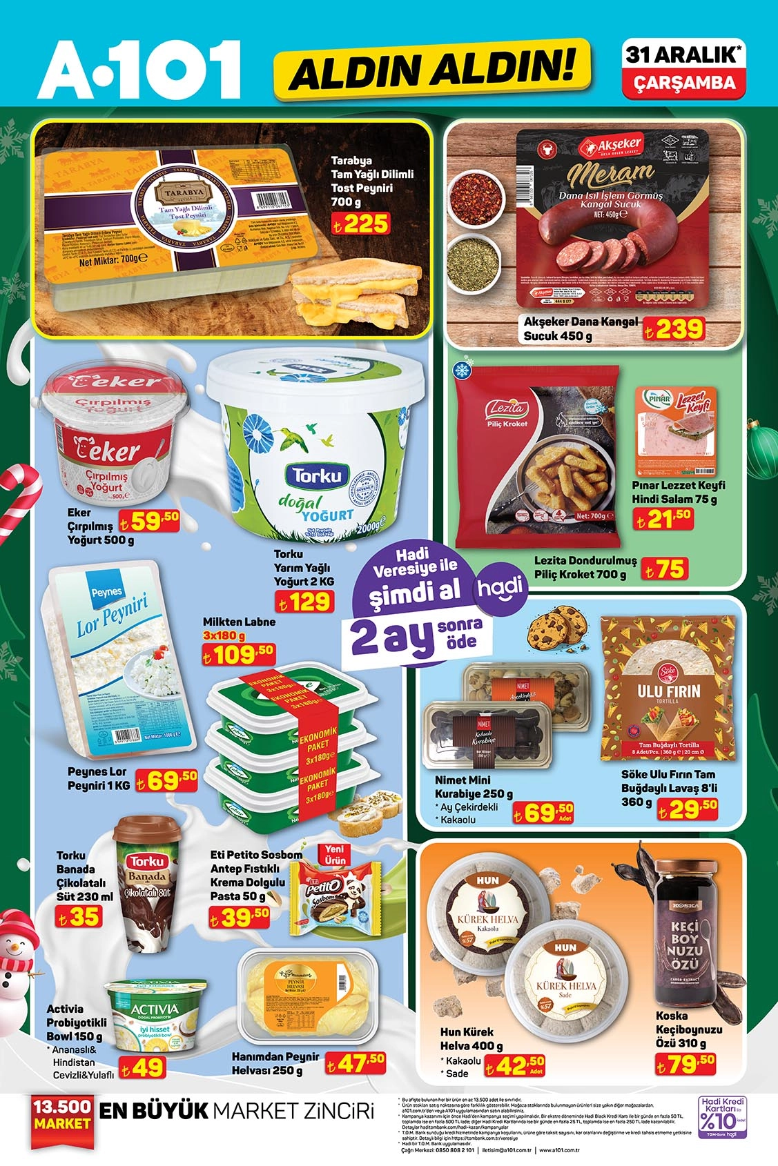 A101, 31 Aralık 2025 tarihli Aldın Aldın aktüel kataloğunu yayımladı. Yılın son kataloğu; teknoloji, beyaz eşya, küçük ev aletleri, mobilya ve ulaşım ürünlerinde dikkat çeken fiyatlarla alışveriş severlerle buluşmaya hazırlanıyor.