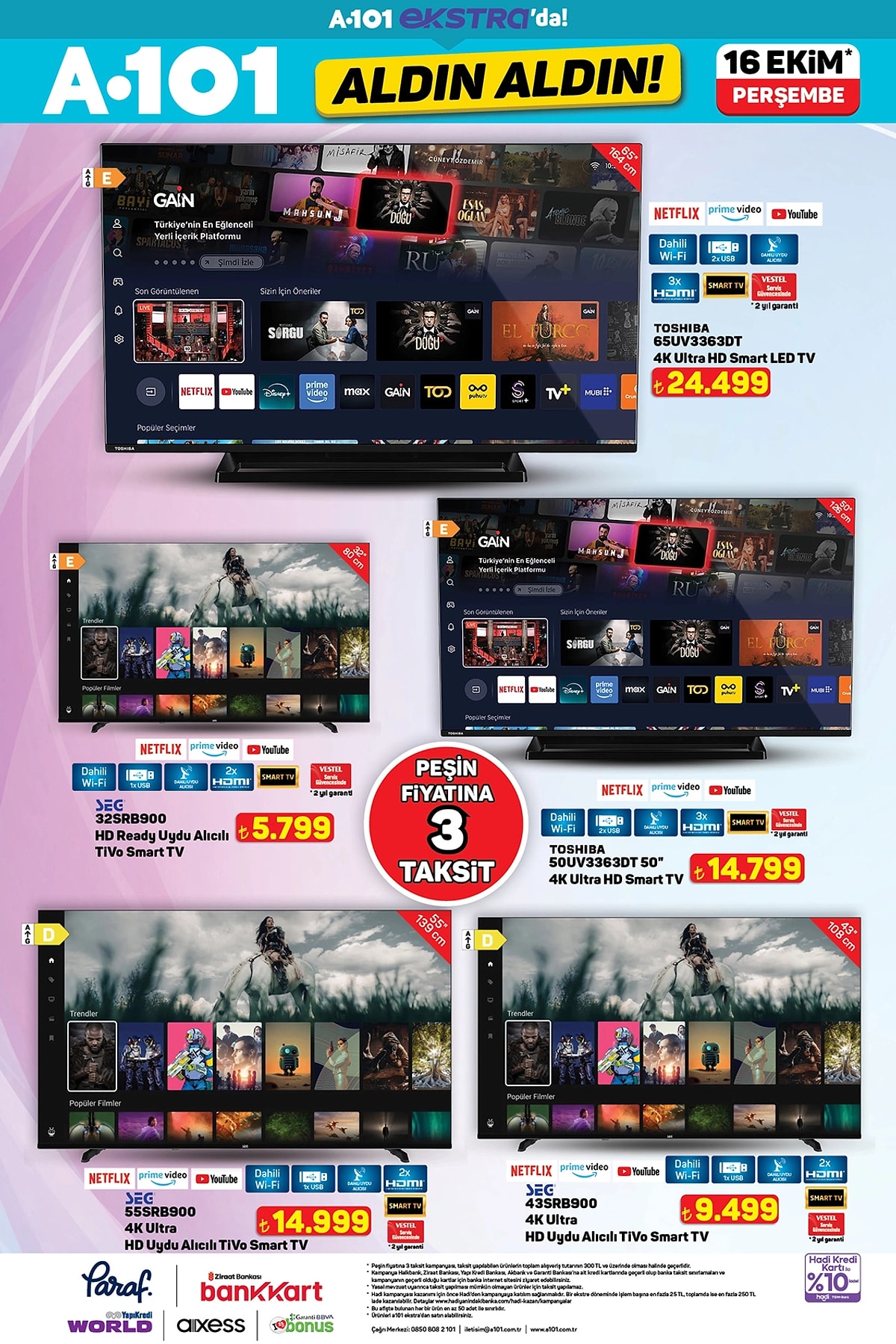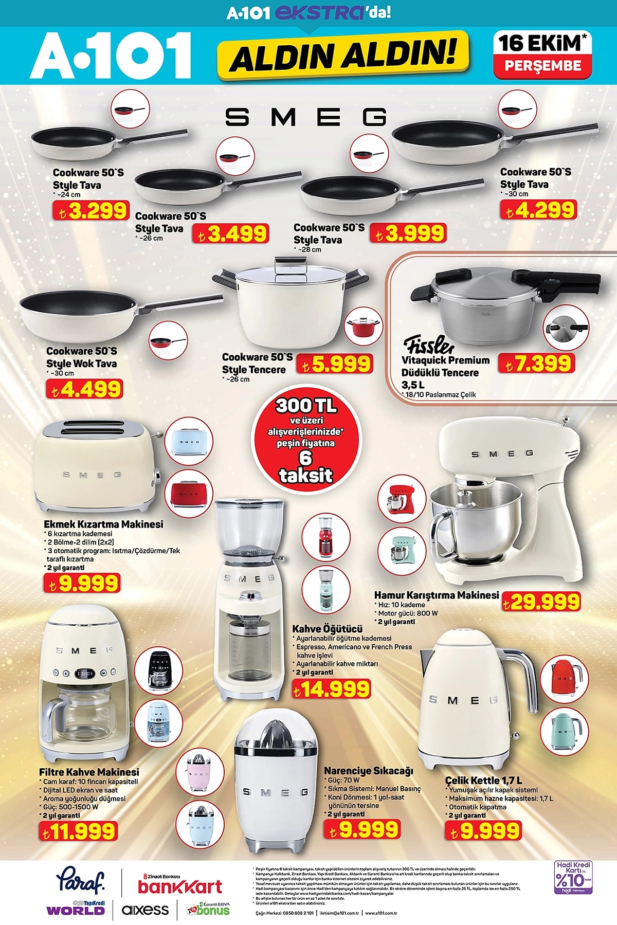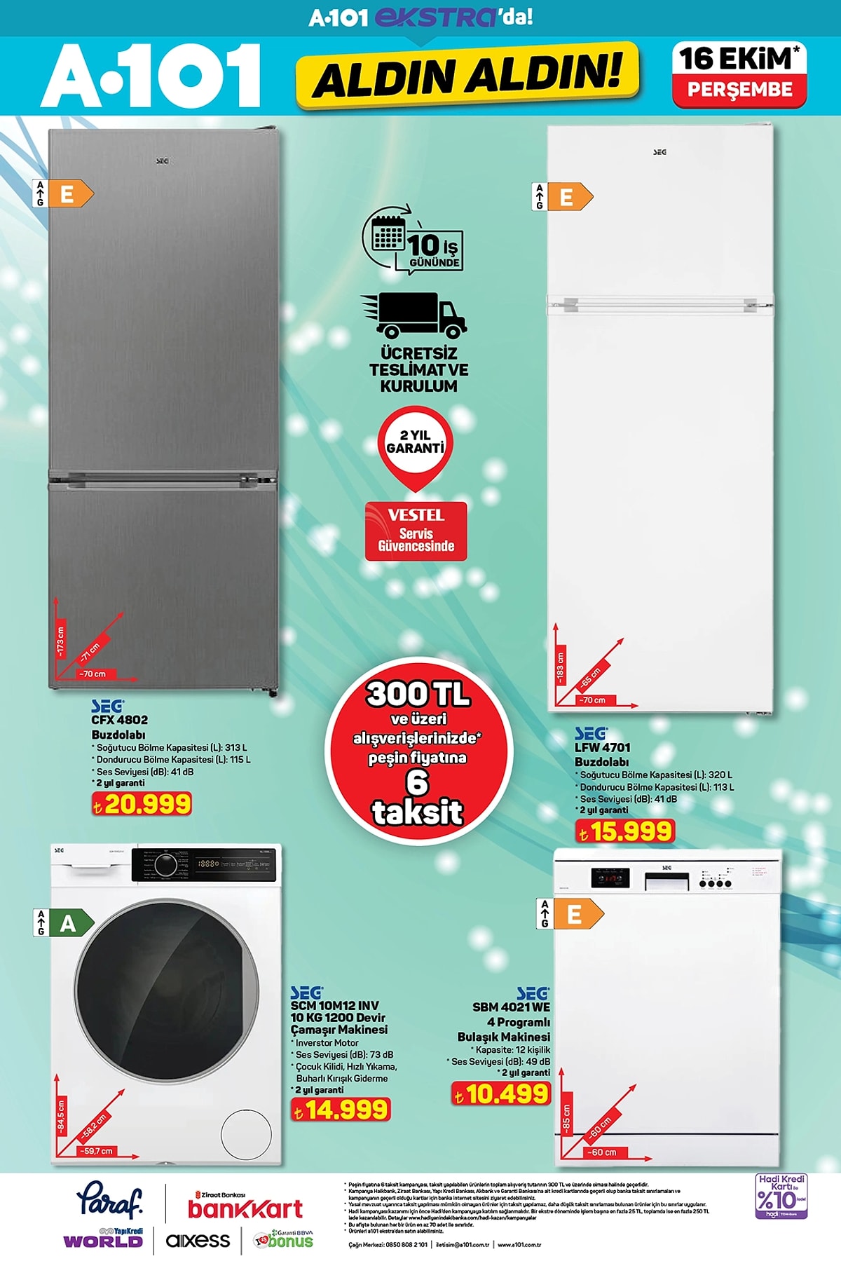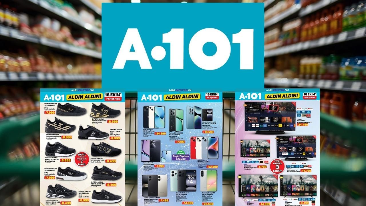 A101’in 16 Ekim 2025 tarihli internete özel Aldın Aldın kataloğu yayınlandı. Elektronikten modaya, beyaz eşyadan mobilyaya dev indirimler dikkat çekiyor.