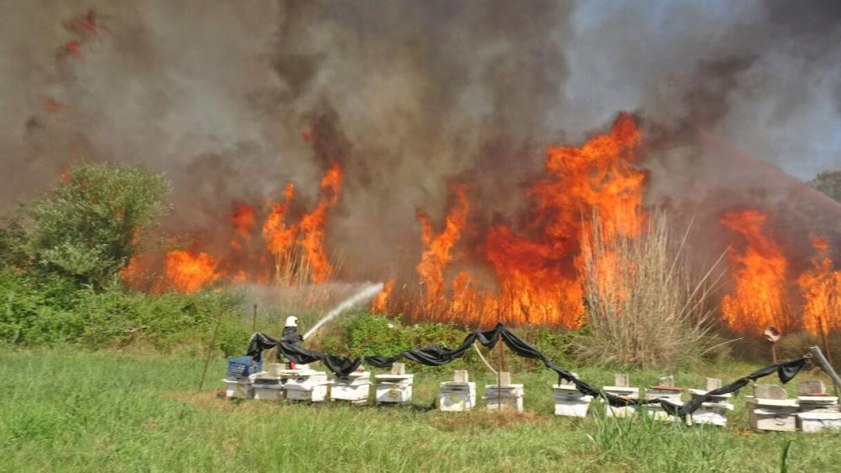 Yangın, ev ve arı kovanlarının bulunduğu alana yönelince tehlike çanları çalmaya başladı. Ancak itfaiye ekipleri büyük bir özveriyle yangının önüne set çekti.