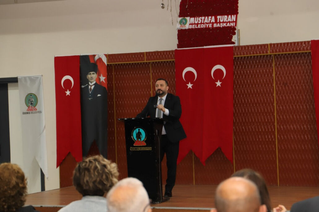 Ödemiş Belediyesi Kongre Merkezinde düzenlenen toplantıya Belediye Başkanı Mustafa Turan’ın yanı sıra Başkan Yardımcıları M. Cumhur Şener ve Metin Kıral, Muhtarlar Derneği Başkanı Nihat Savuran, belediye daire müdürleri ve mahalle muhtarları katıldı.