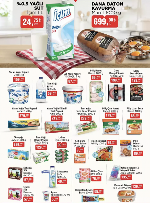 - İçim %0,5 Yağlı Süt 1 L 24,75 TL
