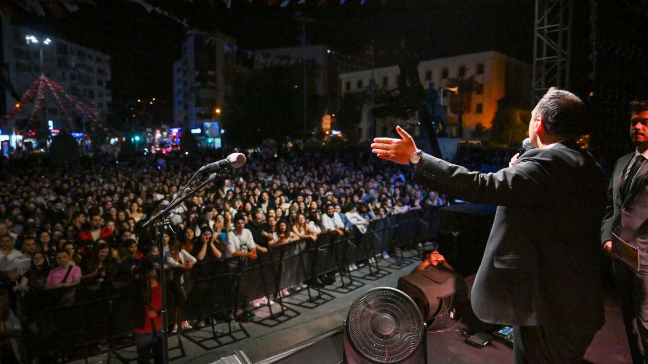 Konseri eşi ve kızıyla birlikte gençlerin arasında izleyen Bornova Belediye Başkanı Ömer Eşki, sahneye çıkarak yaptığı konuşmada, gençlere şöyle seslendi: