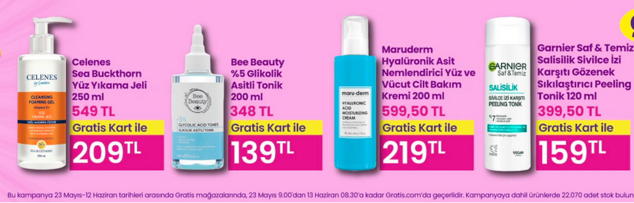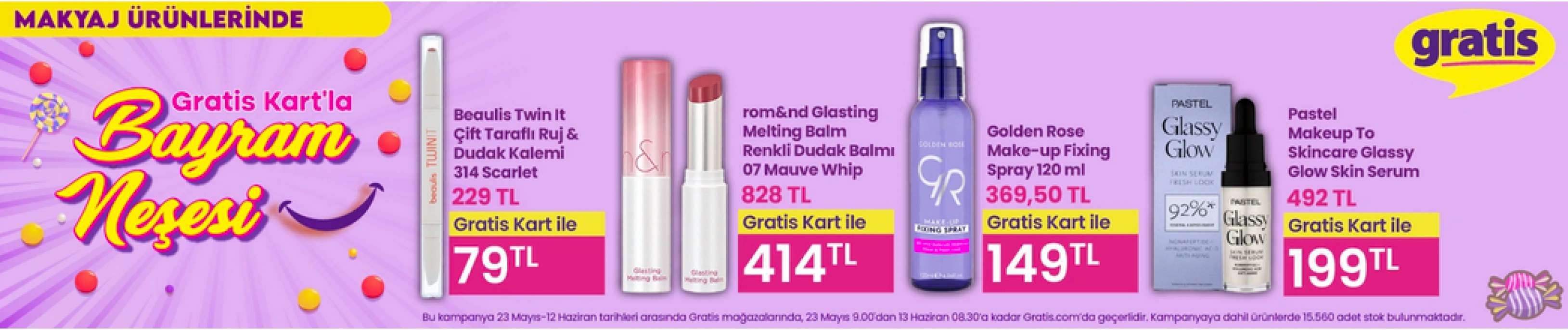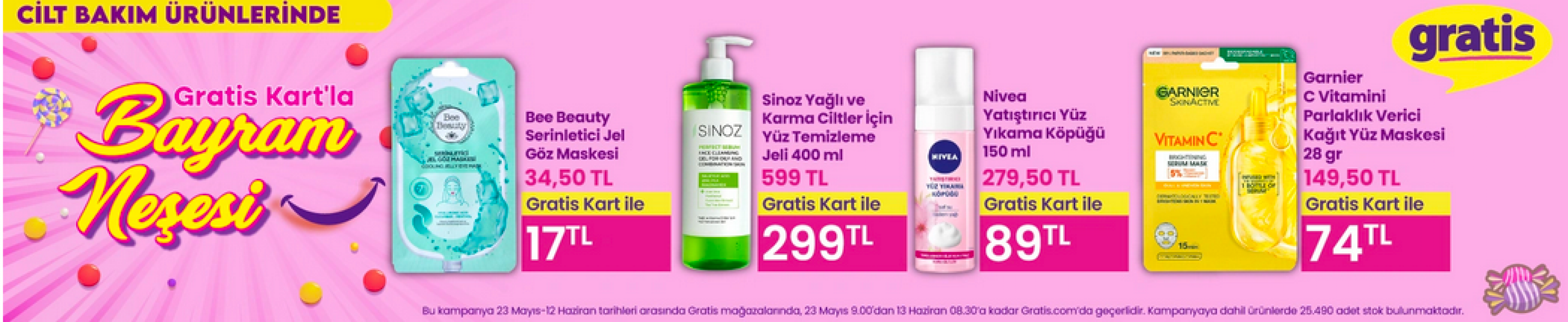 Kampanya kapsamında cilt bakım ürünlerinden saç bakımına, makyaj malzemelerinden hijyen ürünlerine kadar yüzlerce üründe cazip indirimler uygulanıyor. Bayram alışverişinizi hesaplı hale getirmek için Gratis’in bu özel dönemini kaçırmayın.