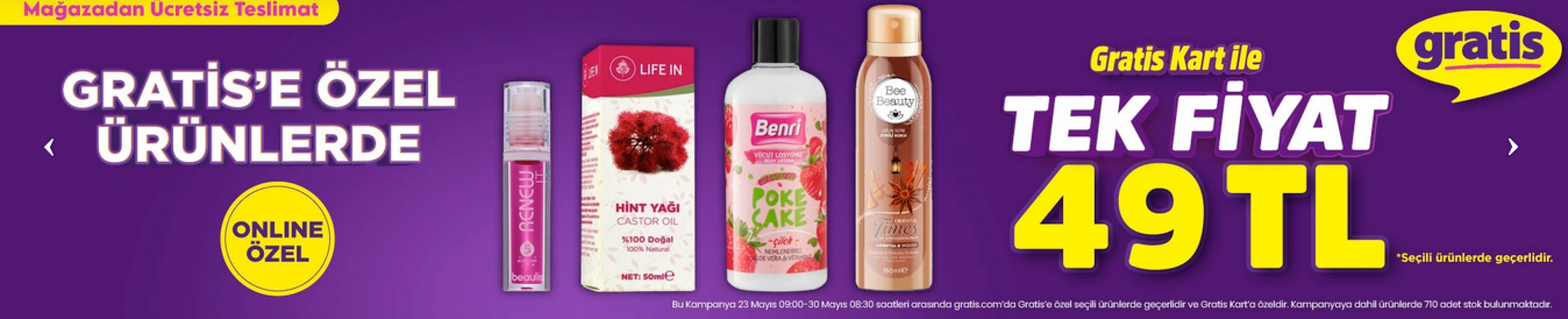 Gratis’in çevrimiçi alışveriş sitesi gratis.com üzerinden yapılacak alışverişlerde, sepet tutarına göre ek indirimler ve ücretsiz kargo fırsatları da sunuluyor. Ayrıca sadece online’a özel ürünler ve kampanyalarla alışveriş keyfi daha da artıyor.