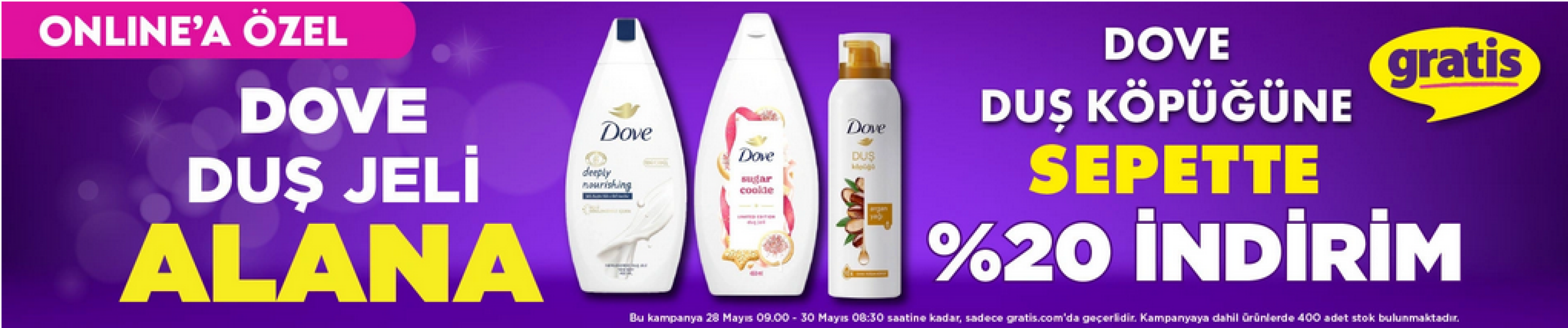 Kampanya kapsamında Dove duş köpüklerinde sepette yüzde 20 indirim uygulanıyor.