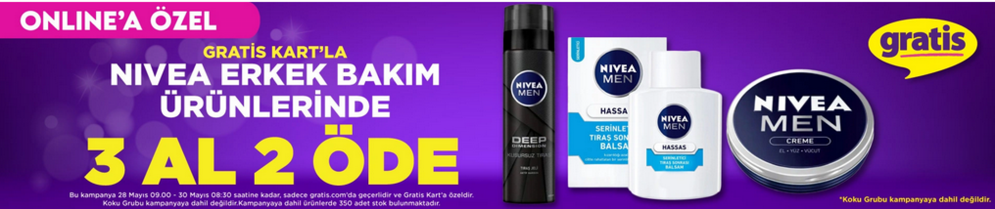 Gratis kart sahipleri için Nivea erkek bakım ürünlerinde “3 al 2 öde” fırsatı bulunuyor.